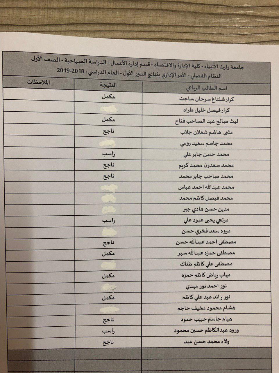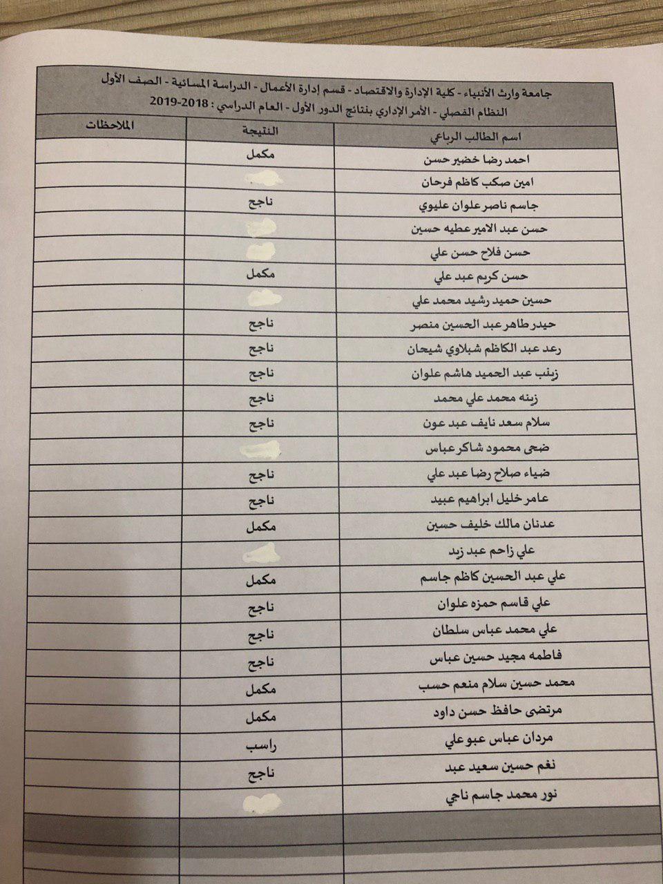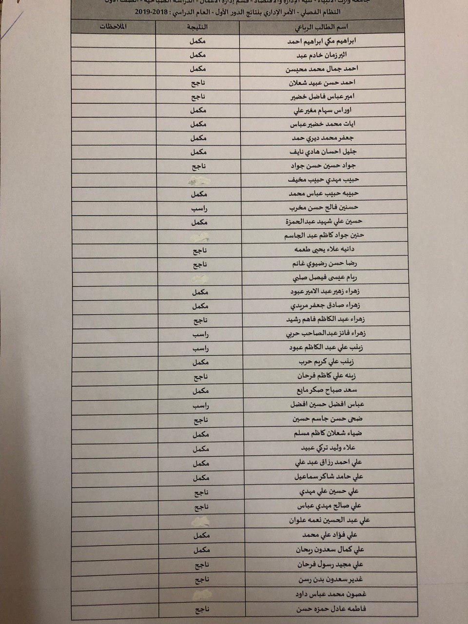 نتائج النهائية للكورس الثاني 2018-2019 / قسم ادارة الاعمال
