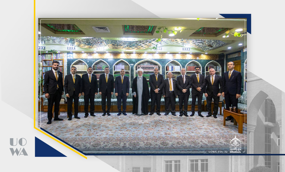جاء ذلك خلال استقبال سماحته لرئيس الجامعة الأستاذ الدكتور إبراهيم سعيد الحياوي وأعضاء مجلس الجامعة، اليوم السبت، حيث اطّلع على أبرز المشاريع والإنجازات التي حققتها الجامعة، ومن بينها حصولها على المركز الثاني ضمن الجامعات المتميزة في جوائز يوم العلم العراقي لعام 2025، والذي يُعد إنجازاً وطنياً يُضاف إلى سجل الجامعة الأكاديمي.