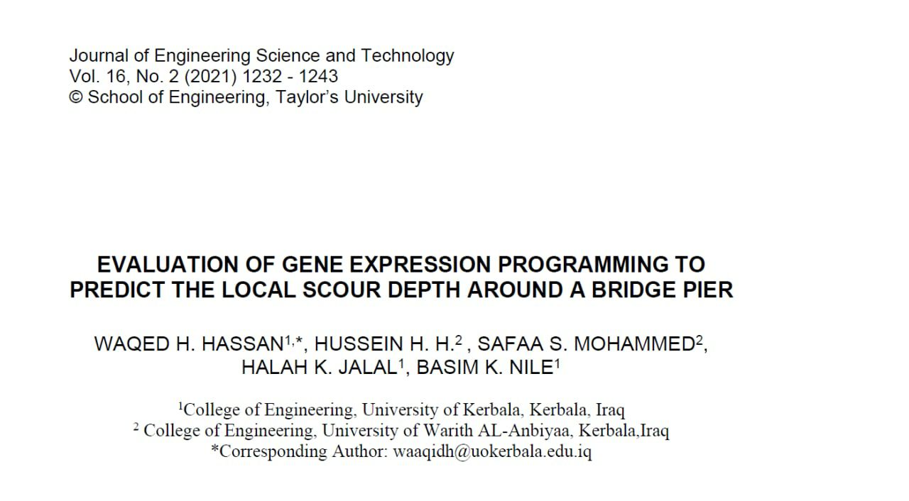 حيث تناول البحث حساب عمق الانجراف (Scour depth) المتوقع حول دعامات الجسور بإستخدام طريقتين من اهم طرق التنبوء المبنية على استخدام الذكاء الاصطناعي (Artificial Intelligence) ، وهما الخوارزمية الجينية (Genetic Algorithm) و الشبكات العصبية (Neural Network)