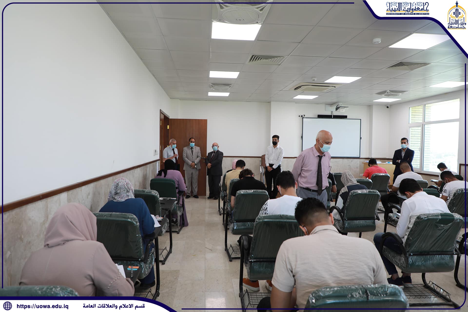 وسط اجراءات وقائية مشددة استأنفت جامعة وارث الانبياء(عليه السلام) الامتحانات النهائية الحضورية في كليات واقسام الجامعة ، حيث اجرى السيد المساعد العلمي/ رئيس الجامعة وكالة الاستاذ الدكتور عباس الدعمي والسيد المساعد الاداري الاستاذ الدكتور نوفل الاعرجي جولة تفقدية للاطلاع على سير الامتحانات النهائية واوعز بتوفير كافة المتطلبات اللوجستية واكدوا على اتباع الامور الوقائية للحفاظ على سلامة طلبتنا الاعزاء من خلال حثهم على الالتزام بالاجراءات الوقائية من لبس الكمامة والتعقيم المستمر .