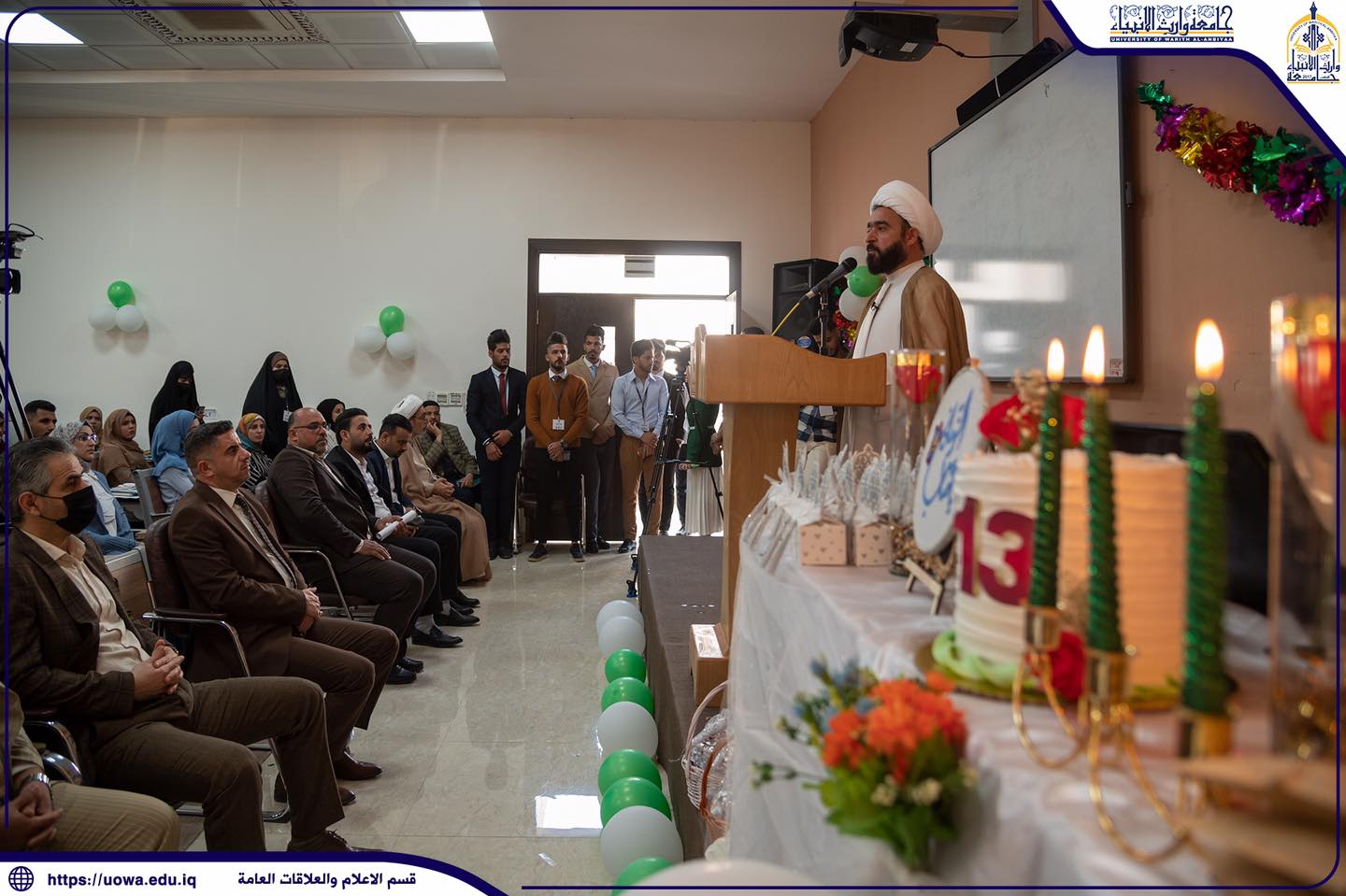 اقامت كلية التمريض في جامعة وارث الانبياء(عليه السلام) احتفالية بمناسبة ذكرى ولادة الامام المهدي(عج) حيث استضافت بهذه المناسبة سماحة الشيخ عبد الرضا معاش الذي قدم محاضرة توعوية تحدث فيها عن واجبات المنتظر الحقيقي لظهور الامام (عج)، وتأهيله بأعلى مستويات الوعي والالتزام، فعلى الشباب الجامعي تحمل المسؤولية في توعية أقرانهم وتخلل الحفل مشاركات شعرية وكلمات لطلبة الكلية.