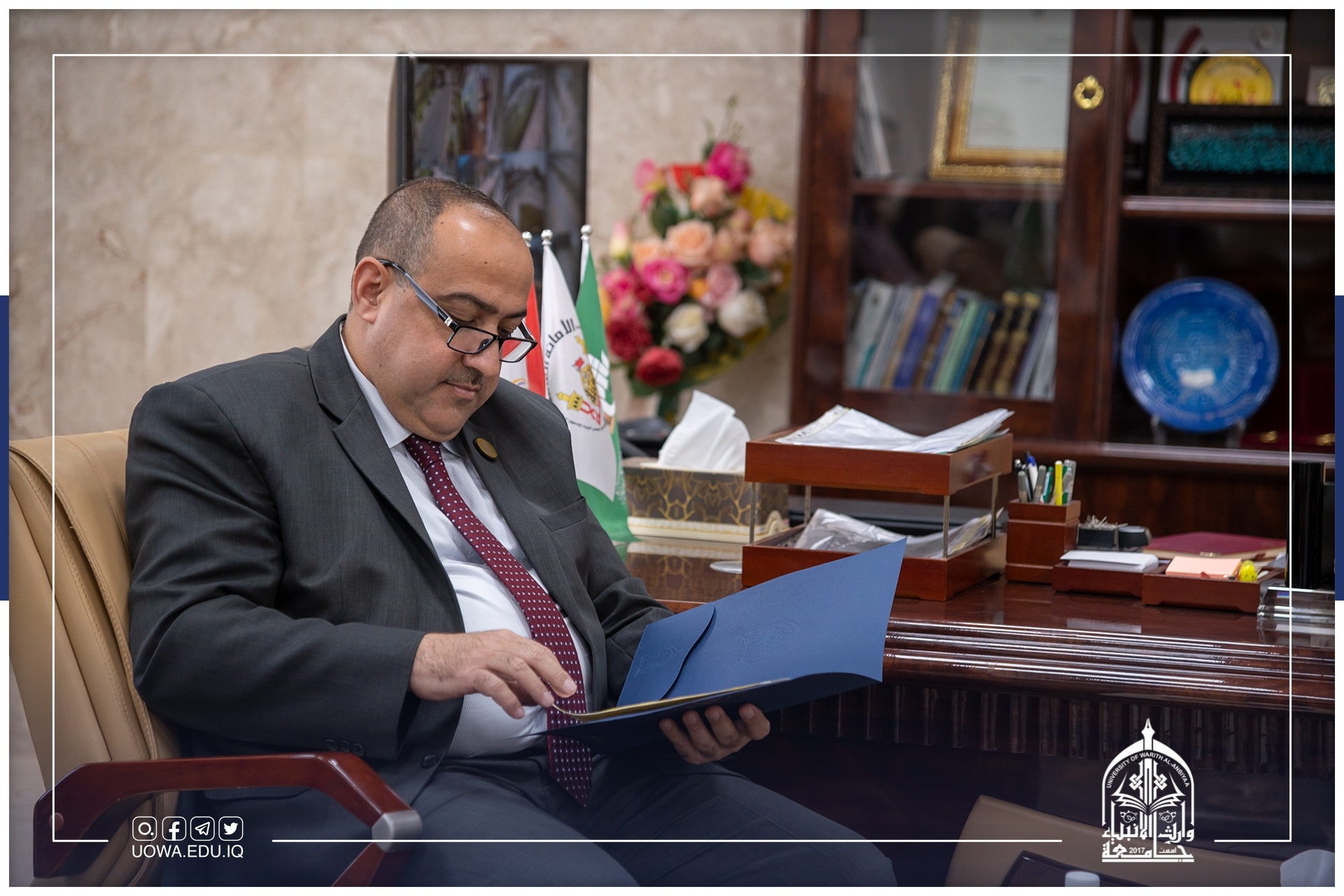 استقبلت رئاسة الجامعة متمثلة بالسيد رئيس الجامعة الاستاذ الدكتور ابراهيم الحياوي، وفد من المديرية العامة للتربية في محافظة كربلاء المقدسة برئاسة المدير العام الاستاذ عباس عودة السلطاني.