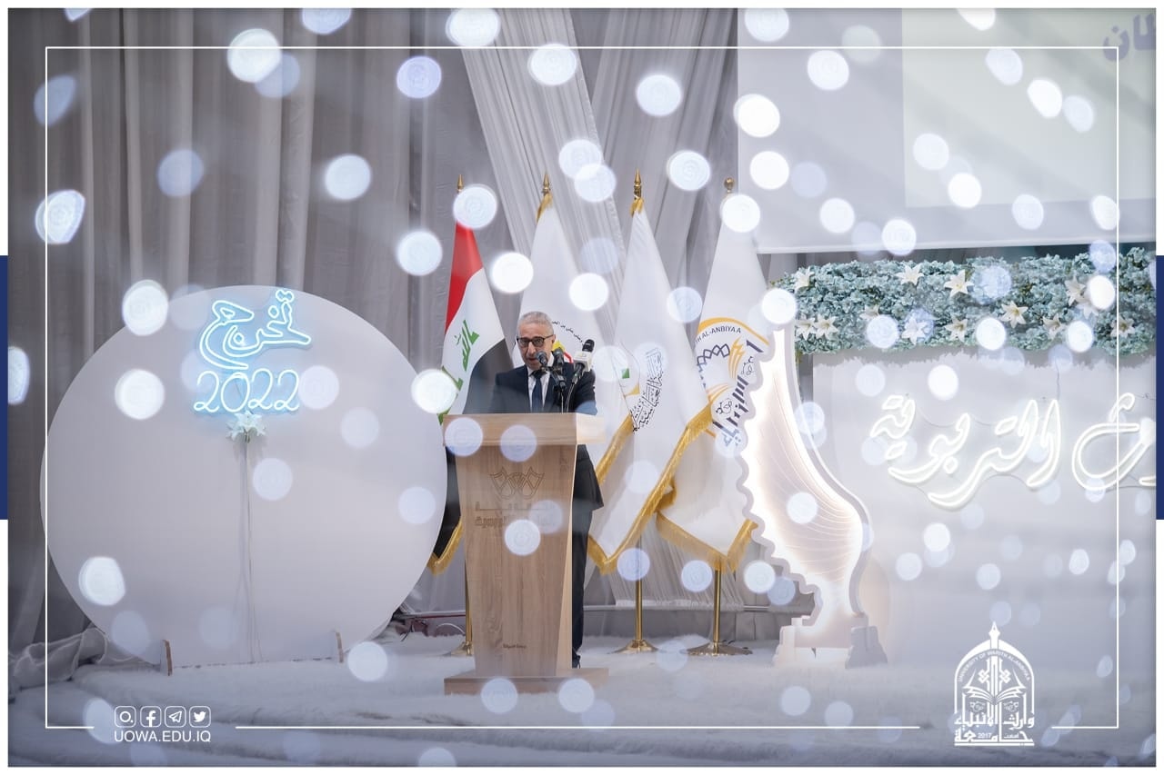 بحضور السيد رئيس الجامعة الاستاذ الدكتور ابراهيم الحياوي والسيد عميد كلية العلوم الاسلامية الدكتور طلال الكمالي، والسادة أعضاء هيئة التدريس وأهالي الطلبة.