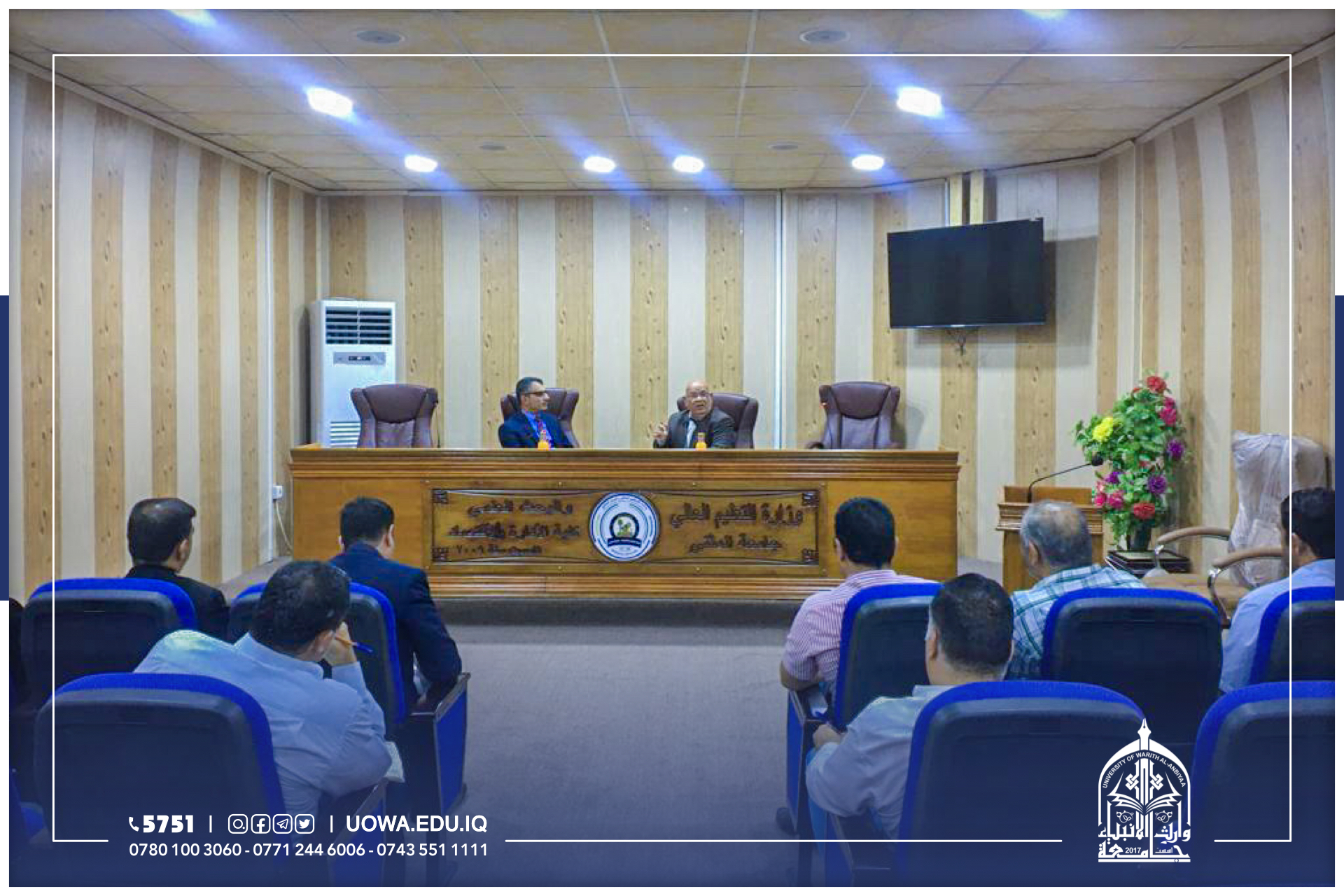كلية الاارة والاقتصاد في جامعة وارث الانبياء جامعة المثنى وكان باستقبالهم الأستاذ المساعد الدكتور صفاء كريم عميد الكلية.