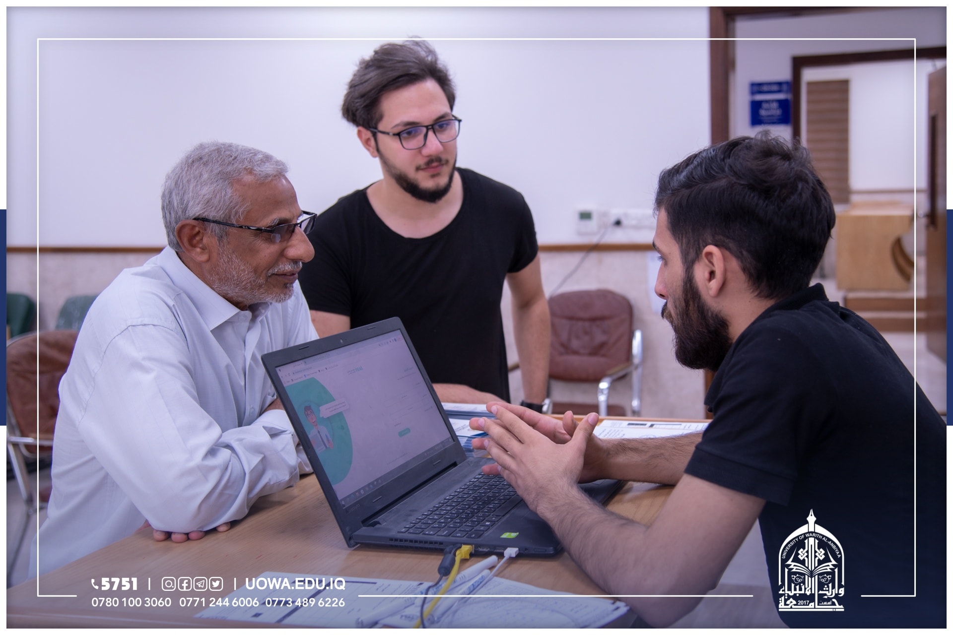 جانب من استقبال فريق التسجيل في جامعة وارث الانبياء(عليه السلام) للطلبة الاعزاء واولياء امورهم الكرام للاجابة عن استفساراتهم ومساعدتهم في انجاز اولى خطوات التقديم، وهي انشاء حساب الطالب وملء البيانات وتفعيل القنوات الخاصة.