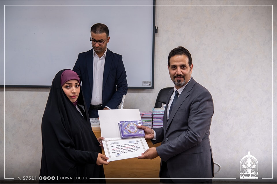 اقامت كلية الإدارة والاقتصاد في جامعة وارث الانبياء (عليه السلام) احتفالية لتكريم الطلبة الاوائل في قسمي المحاسبة وإدارة الاعمال، وفي كلمة القاها في الحفل بين السيد عميد الكلية الاستاذ الدكتور عواد الخالدي أن هذا التكريم جاء لتثمين جهود الطلبة في الدراسة والتفوق وتشجيعهم على بذل المزيد، وتحفيزاً للطلبة الاخرين ليحذوا حذو زملائهم .