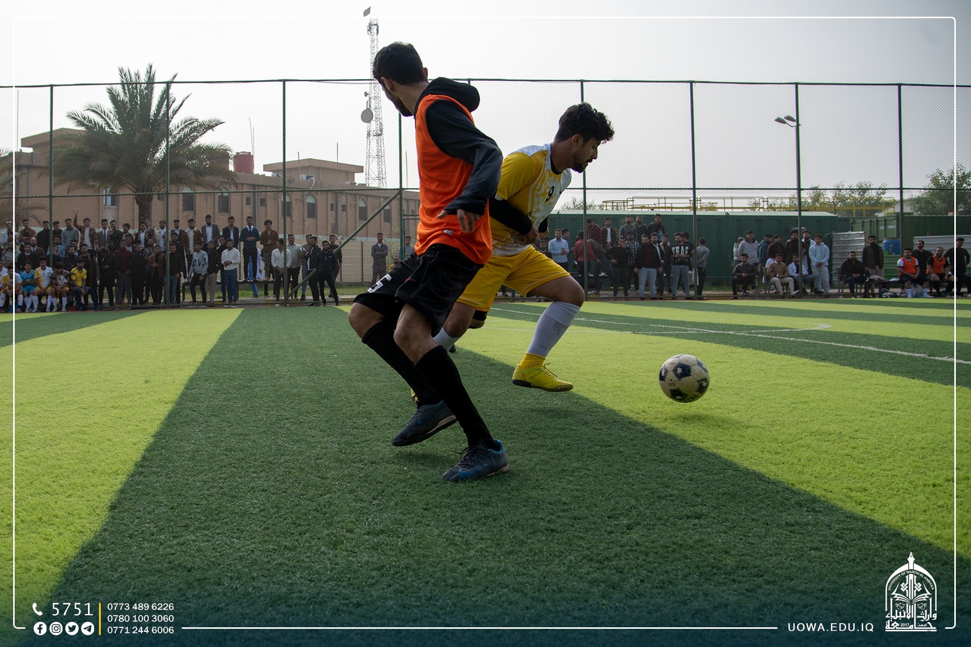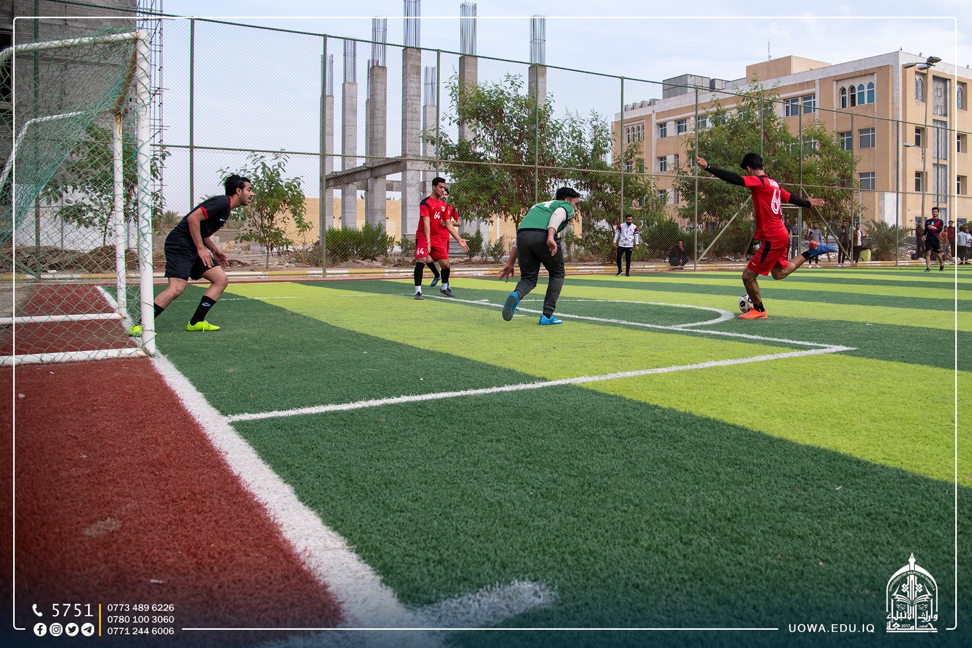 بالصور .... استمرار منافسات بطولة وارث الانبياء لخماسي الكرة بين فرق كليات واقسام الجامعة،التي يقيمها قسم النشاطات الطلابية بالتعاون مع مركز رعاية الشباب بالعتبة الحسينية المقدسة.