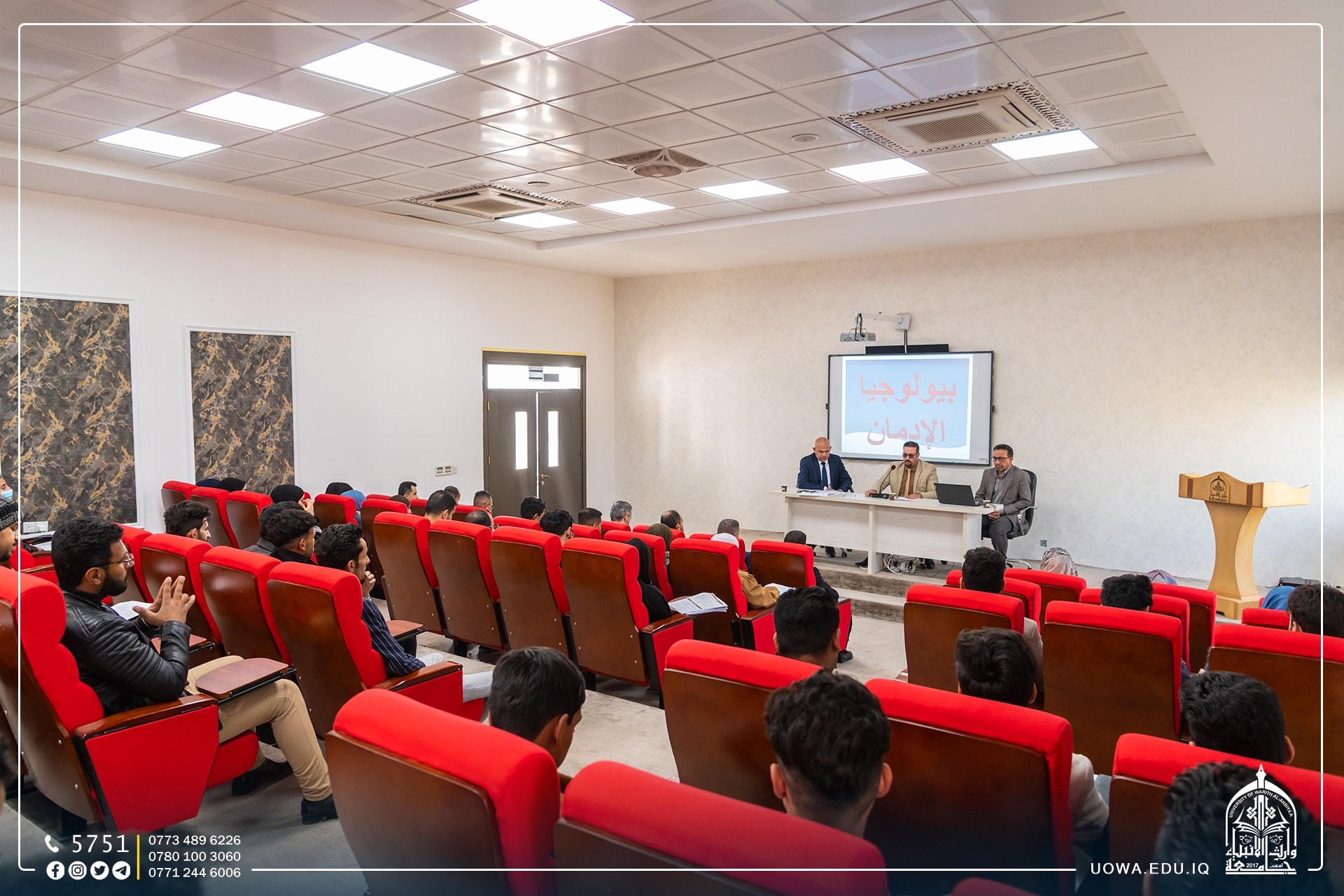 ندوة علمية عن المخدرات والرؤية الطبية والانسانية، تناولت فيها ظاهرة المخدرات وآثارها الصحية والاجتماعية، إذ سلطت الندوة الضوء على هذه الظاهرة السلبية واثارها على الفرد والعائلة والمجتمع، وتناولت أيضاً أضرار المخدرات وما ينتج عنها من تأثيرات آنية ومستقبلية على الفرد والمجتمع، كذلك التأكيد على المسؤولية الملقاة على الجميع في مجابهة تلك الآفة الخطيرة والحد من انتشارها، شارك بتقديم هذه الندوة الدكتور مهدي صالح مدير برنامج مكافحة المخدرات في وزارة الصحة، وا.د.علي عودة محمد مدير عام مركز البحوث النفسية في وزارة التعليم، والدكتور كريم رشك سالم من كلية التمريض جامعة كربلاء.