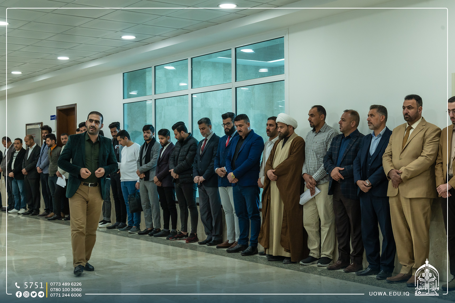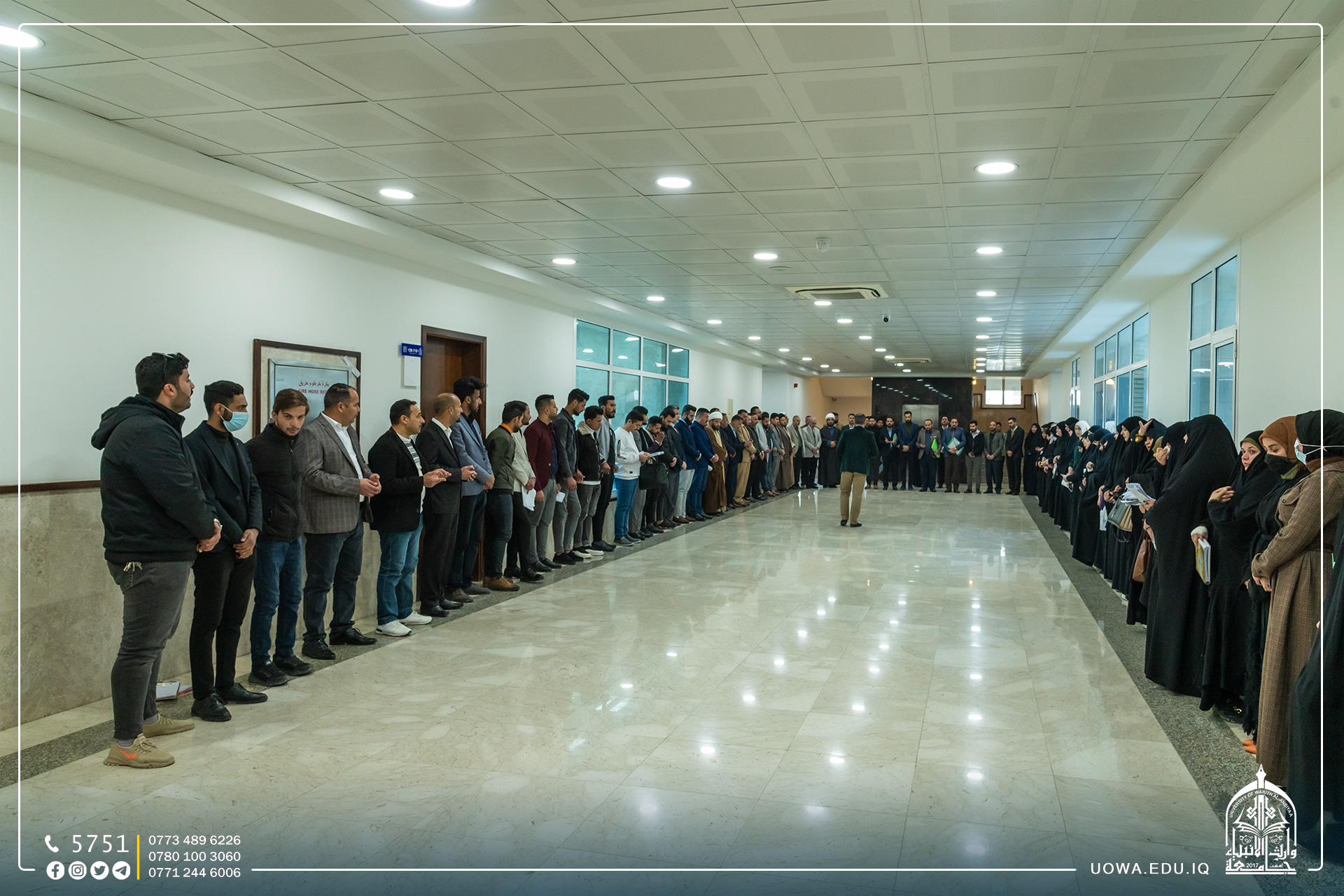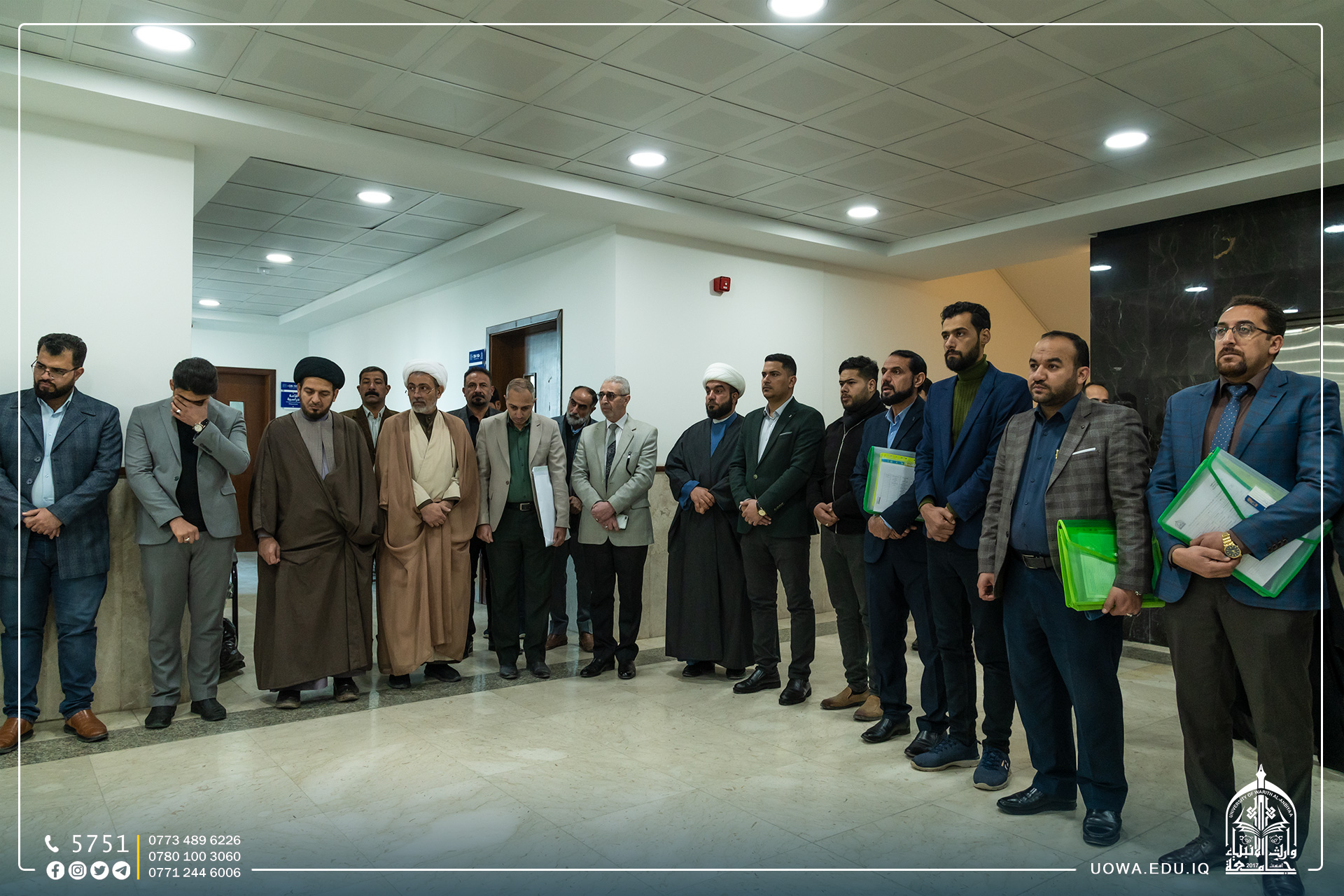 عمادة وطلبة كلية العلوم الاسلامية ينظمون وقفة حداد لقراءة سورة الفاتحة على روح الفقيدة ( حلا عزيز عبيد )، الطالبة في المرحلة الرابعة، سائلين الله (عز وجل) ان يتغمدها برحمته الواسعة، ويلهم ذويها الصبر والسلوان.
