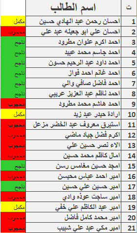 نتائج امتحانات الكورس الاول قسم المحاسبة المرحلة الثانية للدراسة الصباحية