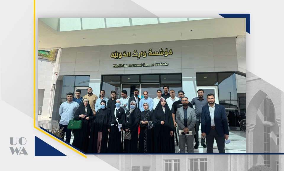 برعاية السيد رئيس الجامعة الاستاذ الدكتور إبراهيم سعيد الحياوي المحترم، وبموافقة السيد عميد كلية الإدارة والاقتصاد الاستاذ الدكتور عواد كاظم شعلان الخالدي المحترم وتنفيذًا لفقرات الخطة العلمية/ الزيارات العلمية للعام الدراسي 2025-2026 وبإشراف الاستاذ المساعد الدكتور حسين محمد علي كشكول وعدد من السادة التدريسيين المحترمين زار عدد من طلبة المرحلة الثانية في قسم إدارة الاعمال مؤسسة وارث الدولية، قسم الاطفال وذلك لتقديم الدعم النفسي والمعنوي للمرضى وقد تم استقبالهم من قبل المؤسسة كما قام الطلبة بتقديم الهدايا للأطفال لدعمهم.