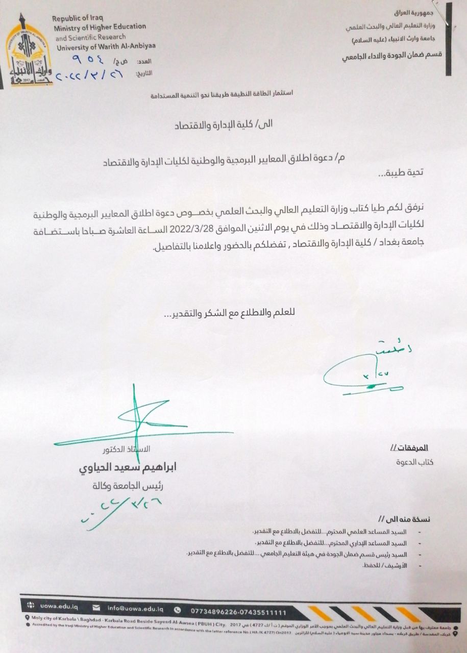 اذ تم دعوة كل من الاستاذ الدكتور عواد الخالدي عميد كلية الادارة والاقتصاد