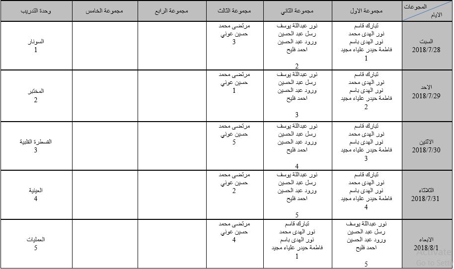 تم تنفيذ برنامج التدريب الصيفي لطلبة قسم هندسة الطب الحياتي للفترة من   1/7/2018ولغاية 25/7/2018 وذلك في مستشفى الامام زين العابدين (ع) التابعة للعتبة الحسينية المقدسة وباشراف مشترك من قبل كوادر القسم والمستشفى وكانت التجربة ناجحة علميا وتطبيقيا بشكل تثير الاعجاب وخاصة تفاعل الطلبة  وحسن سلوكهم والتزام وحرصهم على التعلم وكسب الخبرة العلمية....