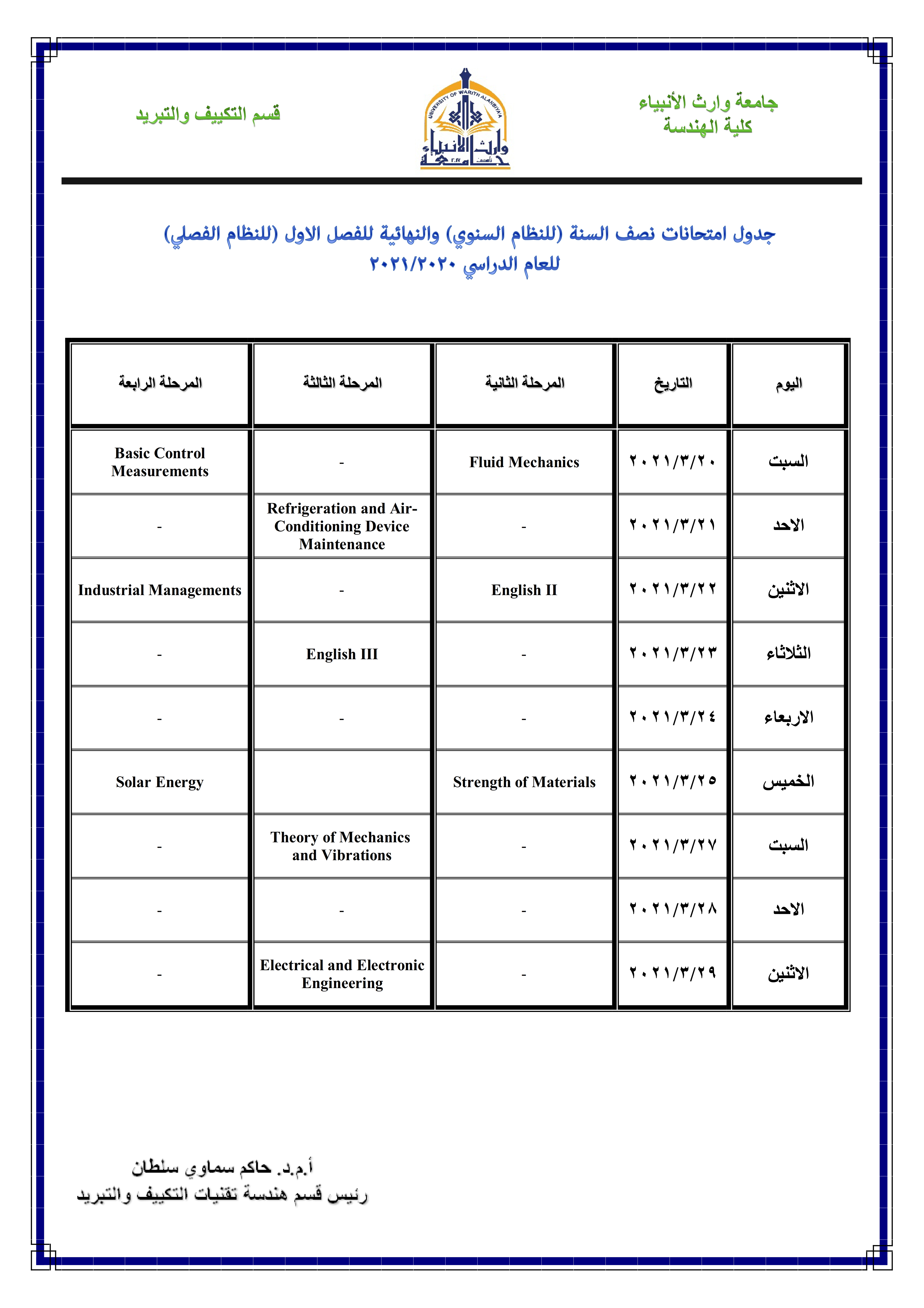 4. قسم هندسة تقنيات التكييف و التبريد  ( [email protected] )