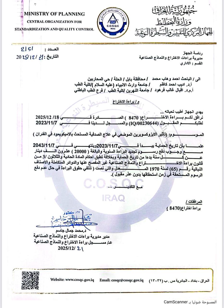 اختيار عميد كلية الهندسة عضو مناقشة اطروحة دكتوراه في الجامعة التكنولوجية