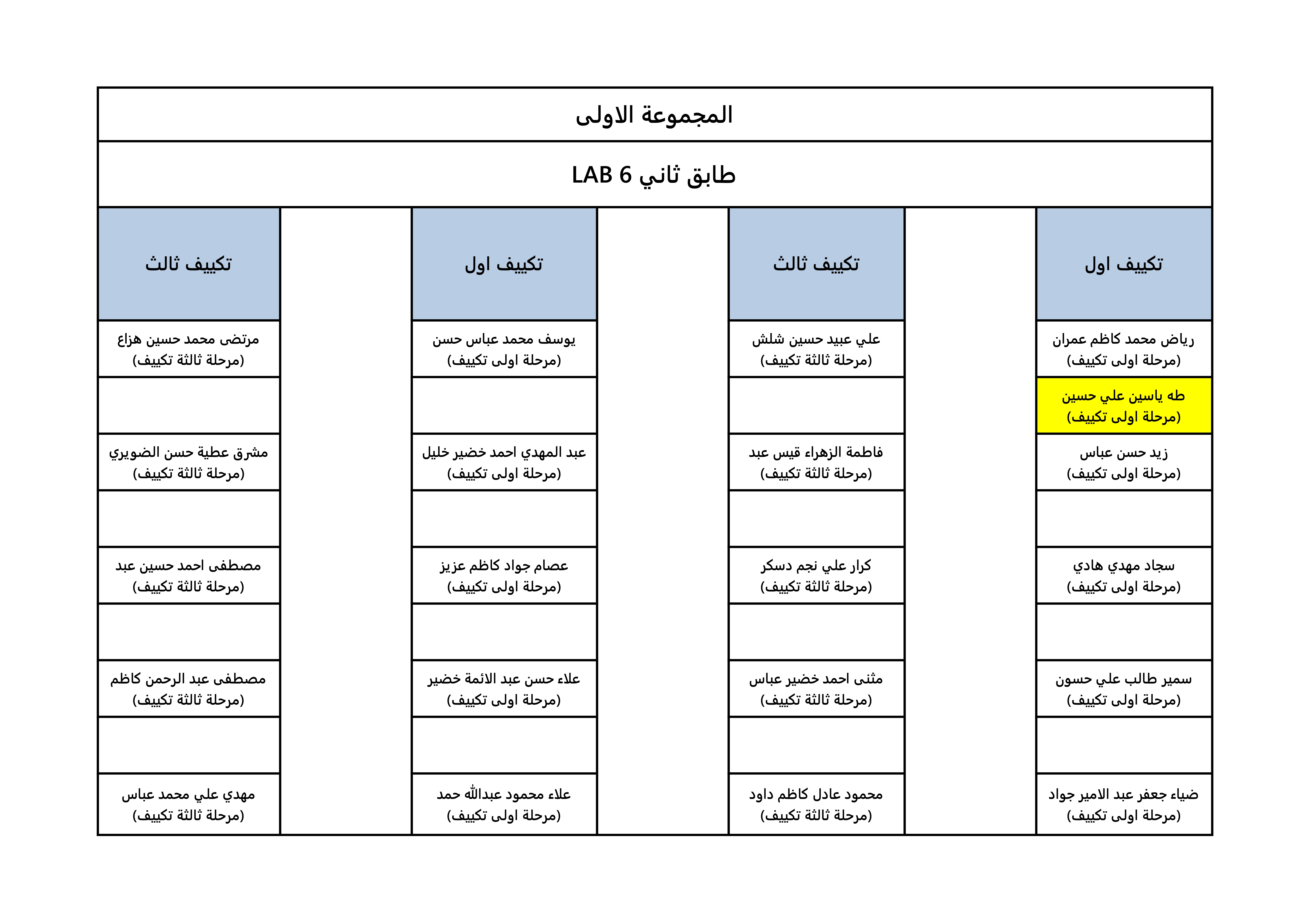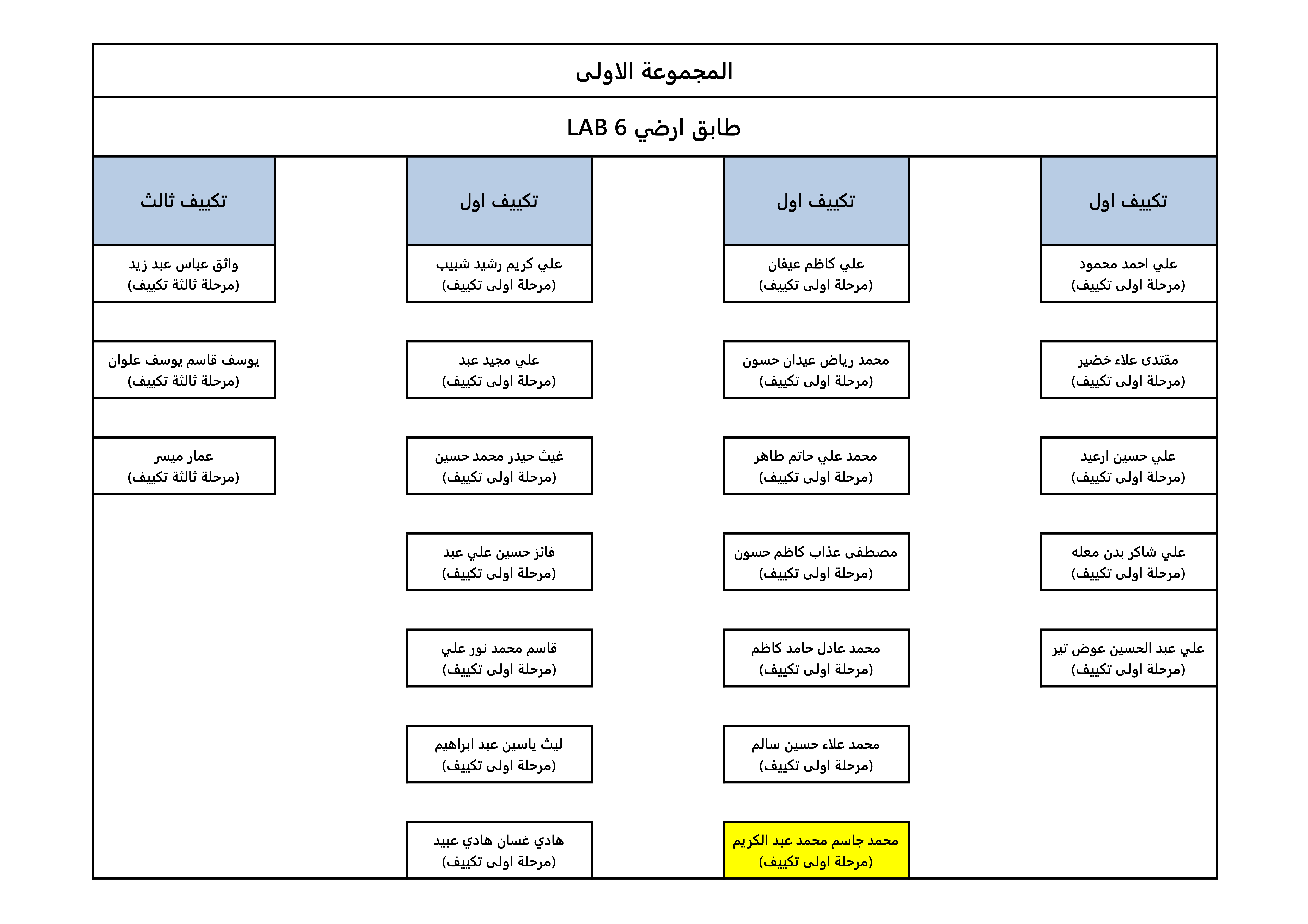 خارطة جلوس الطلبة لقسم هندسة تقنيات التكييف و التبريد