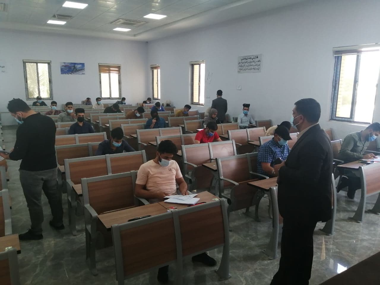 جانب من القاعات الامتحانية لقسم الهندسة المدنية في جامعه وارث الأنبياء ليوم الثلاثاء المصادف ٦ / ٤ / ٢٠٢١ و الذي يبين الاجراءات الوقائية العالية أثناء اداء الامتحانات النهائية للفصل الدراسي الأول - الدور الأول.