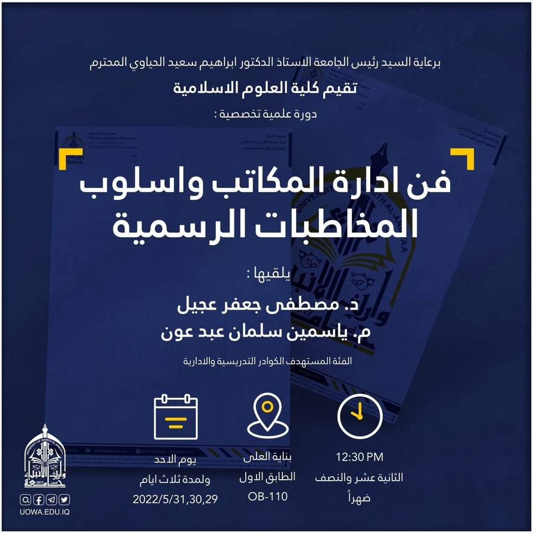 الانتهاء من الأعمال الفنية لإنشاء المكتبة العلمية الخاصة في كلية العلوم الإسلامية والتي ستُرفد بكتب علمية ومنهجية تخدم الطلبة خلال مسيرتهم الدراسية