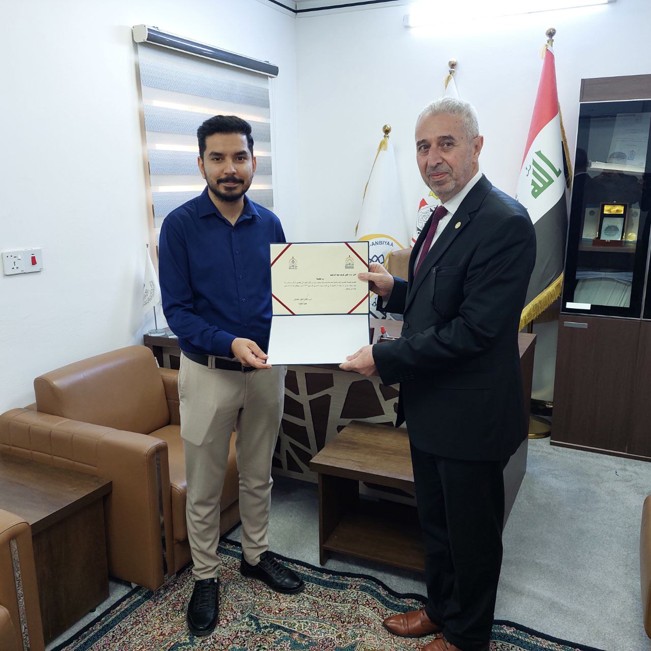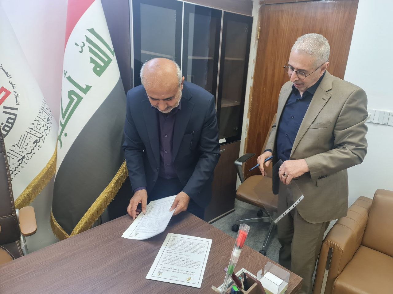 حضر التوقيع ممثل عن جامعة المصطفى العالمية، إلى جانب السيد عميد الكلية الدكتور طلال فائق الكمالي، الذي أشرف على هذا الحدث الهام.