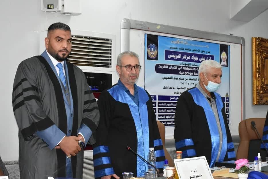 استضافت جامعة بابل / كلية العلوم الإسلامية (الدكتور طلال فائق الكمالي) عضواً في لجنة مناقشة رسالة الماجستير الموسومة (المهارات التعليمية وتنميتها في القرآن الكريم _ دراسة موضوعية) استنادا إلى الأمر الإداري المرقم ٤٣٢ بتاريخ 17/6/2020 وذلك في صباح يوم الخميس الموافق23/7/2020 على قاعة الفرقان