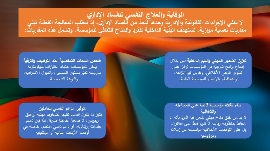- الإجراءات النفسية الوقائية والعلاجية للحد من الفساد الإداري؛