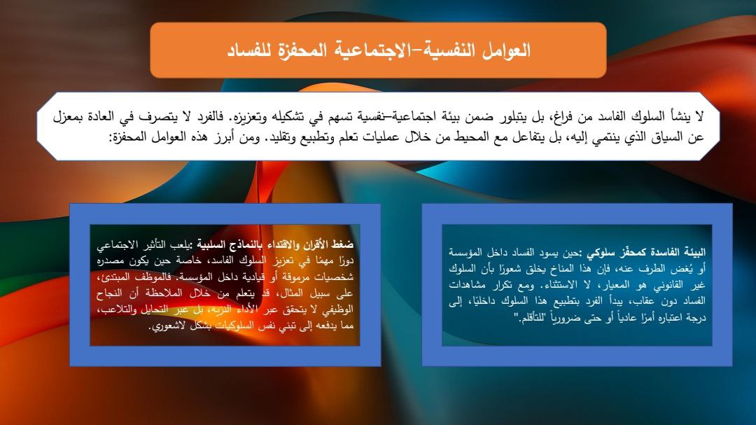 - الدوافع النفسية الجوهرية والعوامل الاجتماعية المحفّزة للفساد؛