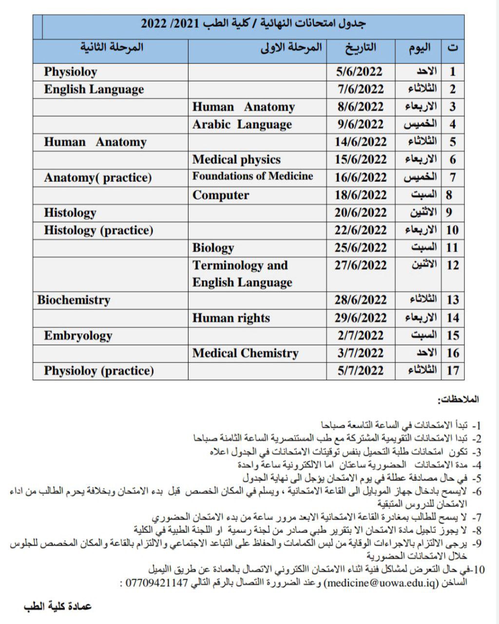 مع تمنياتنا لجميع الطلبة بالموفقية والنجاح