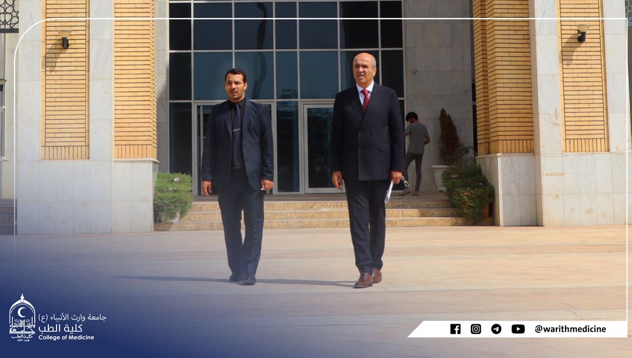 والتقى الوفد بعميد كلية الطب في جامعة وارث الانبياء(عليه السلام) الاستاذ الدكتور احمد العزاوي، واطلع على الواقع العلمي للكلية.