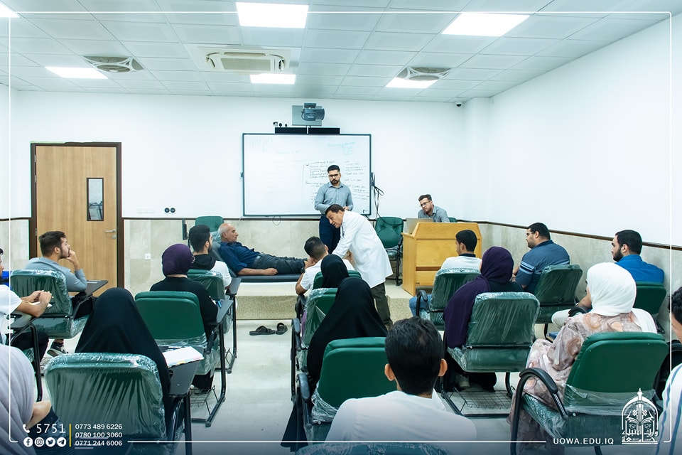 "المركز الوطني لتقييم الكفايات الطبية" في جامعة وارث الانبياء (عليه السلام) يستقبل طلبة كلية الطب لتدريبهم على اداء الفحص الاولي للحالات المرضية.