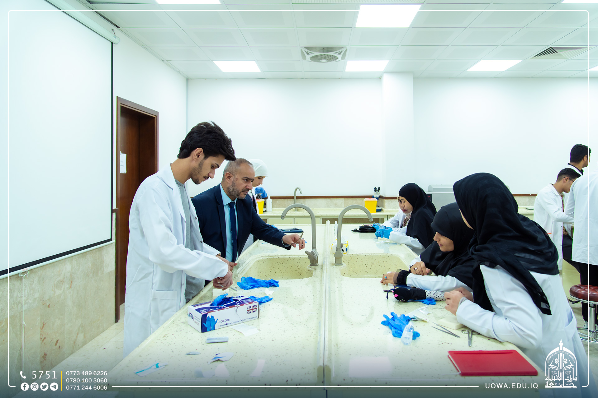 التقطت عدسة اعلام جامعة وارث الأنبياء (عليه السلام) صورا لطلبة كلية الطب المتدربين عمليا على يد عدد من الأطباء والمتخصصين ضمن "الكورس التدريبي المكثف الاول".