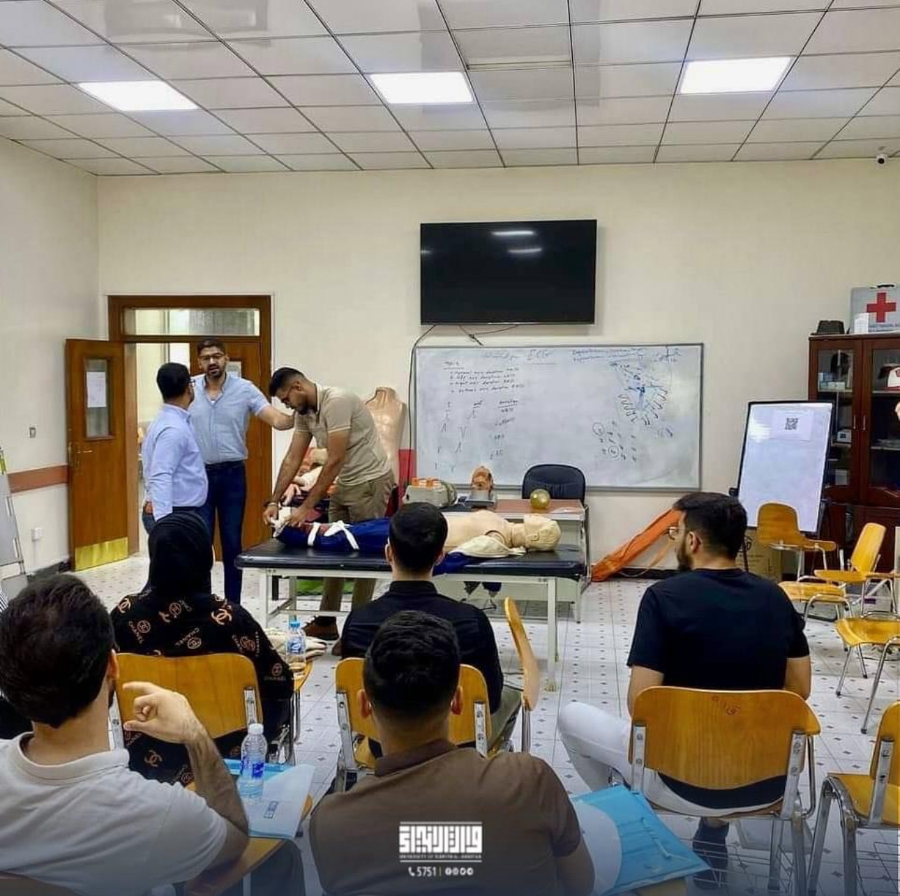 بإشراف منظمة الصحة العالمية، وتفعيلا للاتفاقية الموقعة بين كلية الطب في جامعة وارث الانبياء(عليه السلام)، و المركز الاقليمي لطب الطوارئ في وزارة الصحة العراقية، شارك ٣٠ طالب من طلبة كلية الطب في الدورة التدريبية التي اقامتها مديرية العلميات والخدمات الطبية الطارئة في وزارة الصحة العراقية.