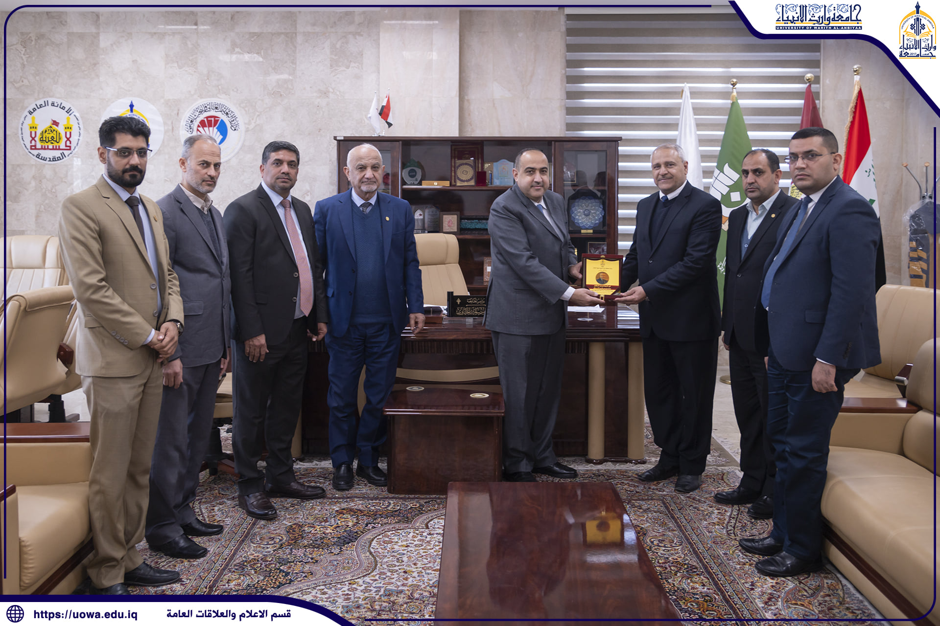 في اطار التعاون المشترك بين مؤسسات العتبة الحسينية المقدسة ،وحرصاً على ديمومة التواصل العلمي.استقبل السيد رئيس هيئة التعليم الجامعي في العتبة الحسينية المقدسة الأستاذ الدكتور حيدر التميمي والسيد رئيس الجامعة الأستاذ الدكتور إبراهيم الحياوي، السيد رئيس هيئة الصحة والتعليم الطبي التابعة للعتبة المقدسة الدكتور ستار الساعدي إذ جاءت الزيارة لبحث سبل التعاون بين الطرفين، باعتبار أن الجهتين تصبان في نبع واحد ألا وهو العتبة الحسينية المقدسة، دعماً لمشروع الجامعات الذي تطمح به العتبة المقدسة للنهوض بالعملية التعليمية في البلد العزيز .