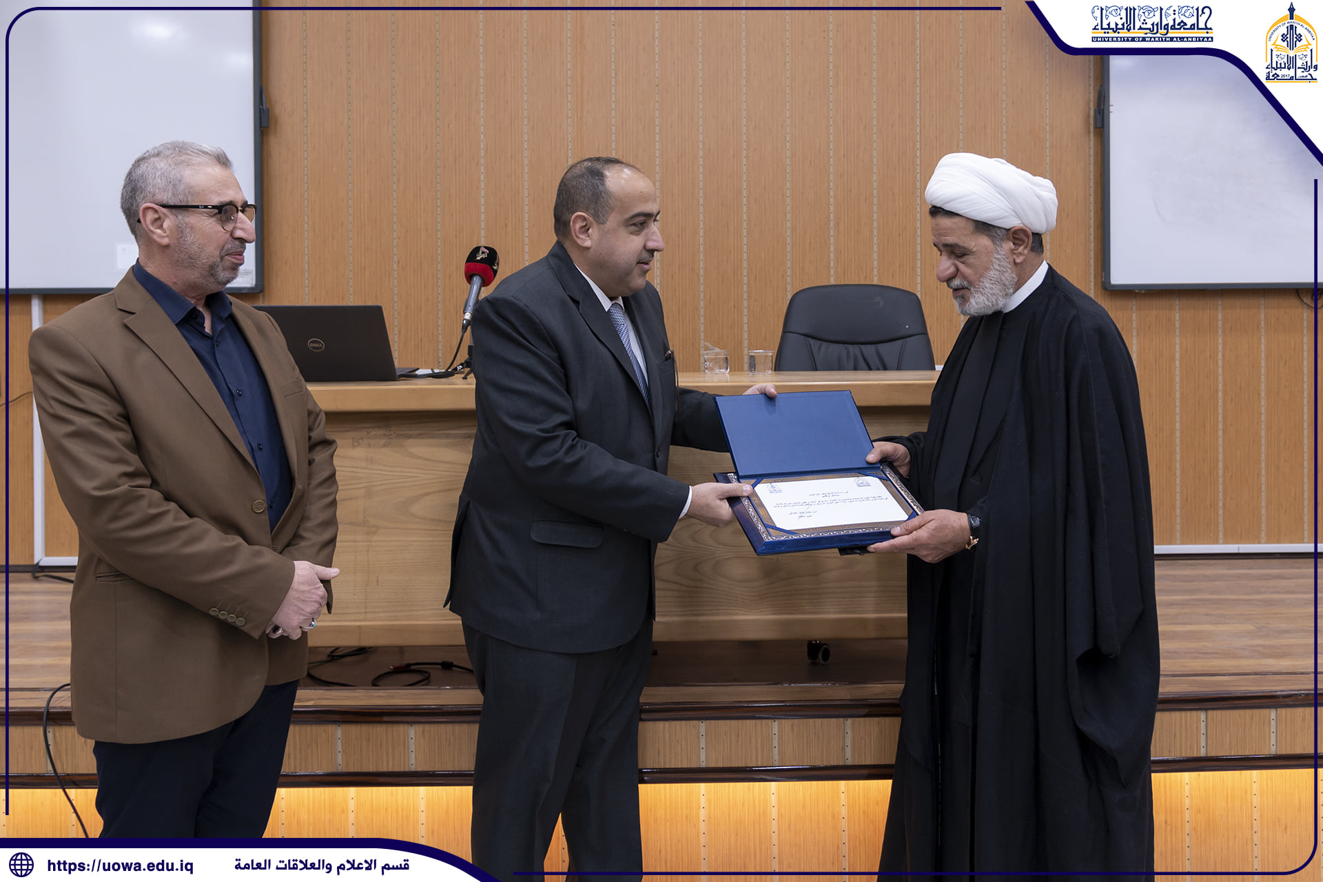 كرّمت رئاسة جامعة وارث الأنبياء(عليه السلام) الأستاذ المساعد الدكتور عدنان الشروفي، تثميناً لجهوده وتفانيه في عمله خلال فترة تكليفه الرسمي بإدارة عمادة الكلية.وجرى التكريم في مكتب السيد رئيس الجامعة الأستاذ الدكتور إبراهيم الحياوي بحضور السادة مساعدي رئيس الجامعة ، فضلاً عن عدد من السادة أعضاء الهيئة التدريسية.