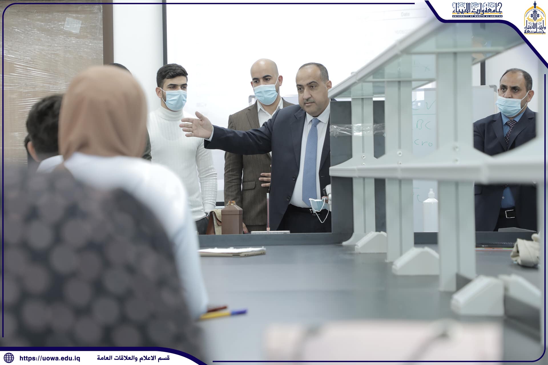 اجرى السيد رئيس الجامعة الاستاذ الدكتور ابراهيم سعيد الحياوي جولة تفقدية في اروقة الجامعة يرافقه السيد المساعد العلمي الاستاذ الدكتور عباس الدعميتفقد فيها المختبرات العلمية ومختبرات الحاسوب التي اعدتها الجامعة مسبقاً لامتحان الرصانه العلمية والتقييم العلمي لكليتي الطب البشري والتمريضوتفقد ايضا بناية العصمة والنادي الطلابي وكراج الطلبة واوعز بتوفير جميع المستلزمات الضرورية لانجاح العملية التعليمية في الجامعة.