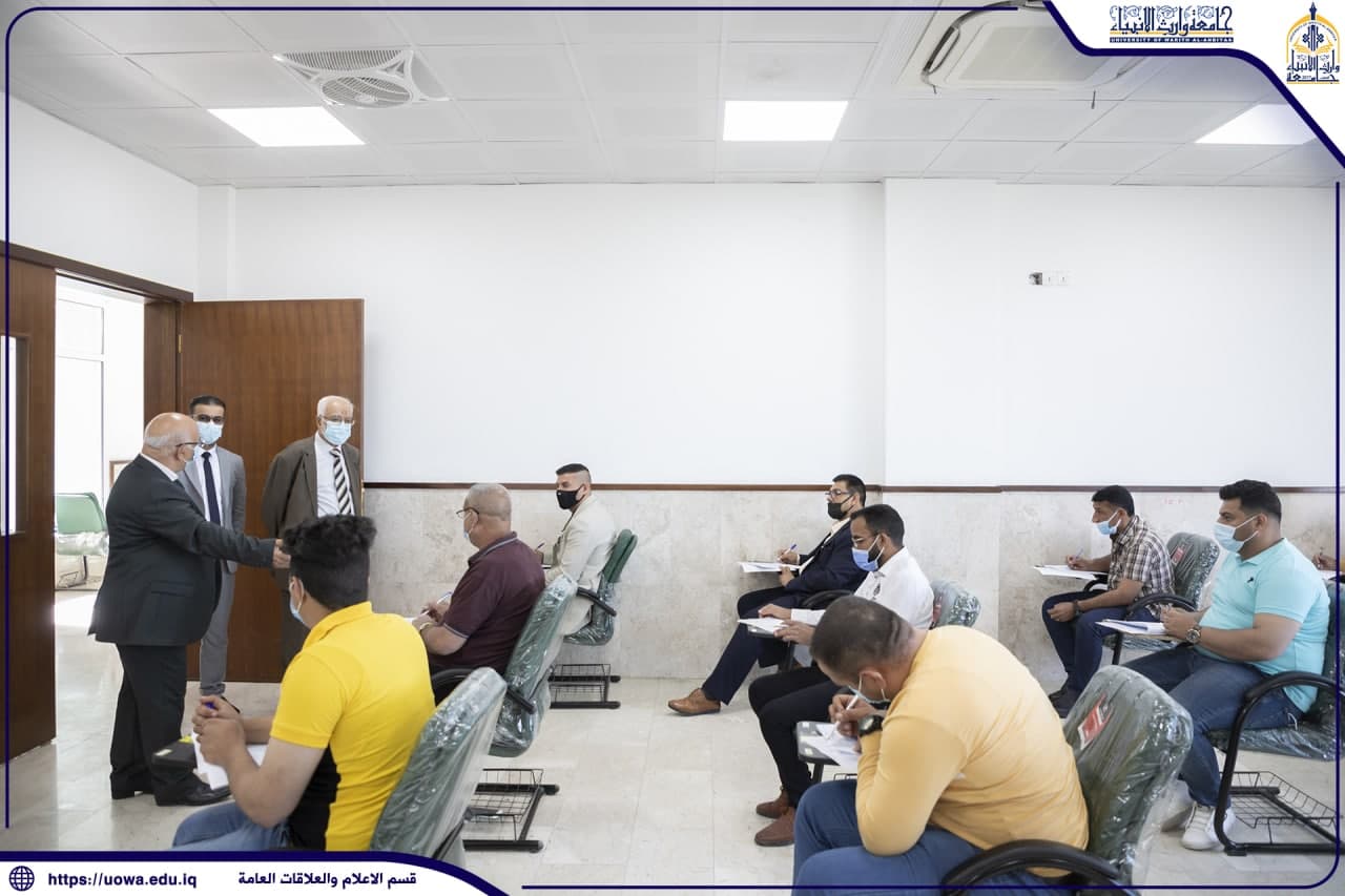 قام السيد رئيس جامعة وارث الانبياء ( عليه السلام ) الاستاذ الدكتور ( طالب حسن موسى ) بزيارة القاعات الامتحانية في الكلية و متابعة سير الامتحانات والتأكيد على ارشادات السلامة والوقاية.