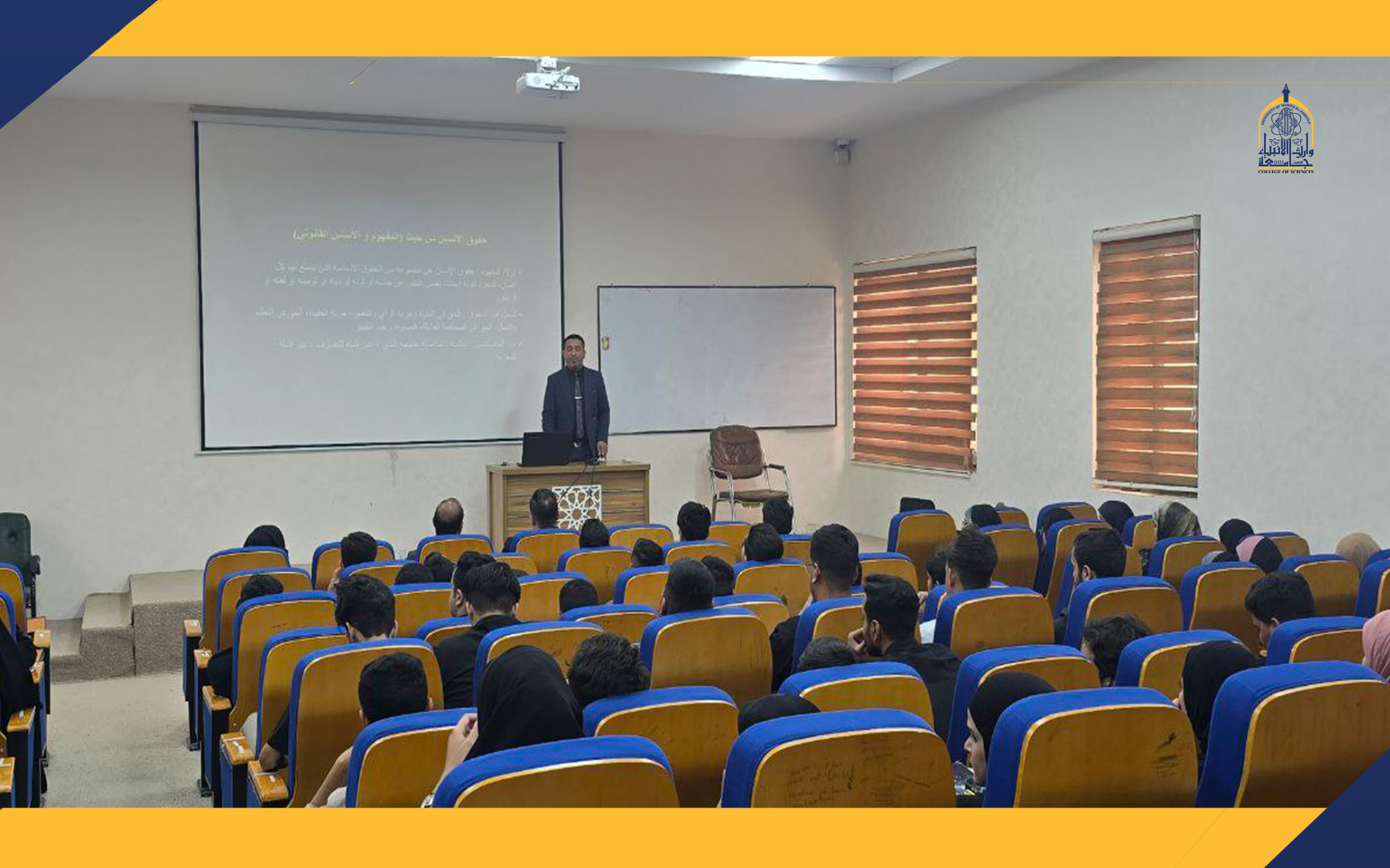 قدمت كلية العلوم في جامعة وارث الأنبياء (ع) ورشة عمل بعنوان "حقوق الإنسان: المفهوم والأساس القانوني"، ألقاها التدريسي م.م عباس طاهر. وتهدف هذه الورشة إلى تعزيز معرفة طلبة الكلية بالقضايا القانونية والاجتماعية الأساسية.
