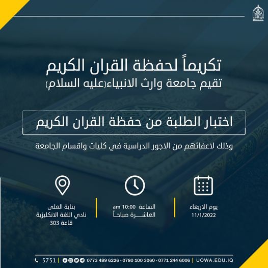 رئاسة جامعة وارث الانبياء (عليه السلام) تبارك لكم الذكرى (101) لتأسيس الجيش العراقي البطل، وتحيي المقاتلين الغيارى في مختلف صنوف وتشكيلات القوات المسلحة البطلة الذين ما زالوا يسطرون أروع صور البطولة والفداء دفاعاً عن العراق ومقدساته وشعبه وحرمة اراضيه ويواصلون ادامة الانتصارات ومطاردة اعداء الوطن من بقايا العصابات الارهابية