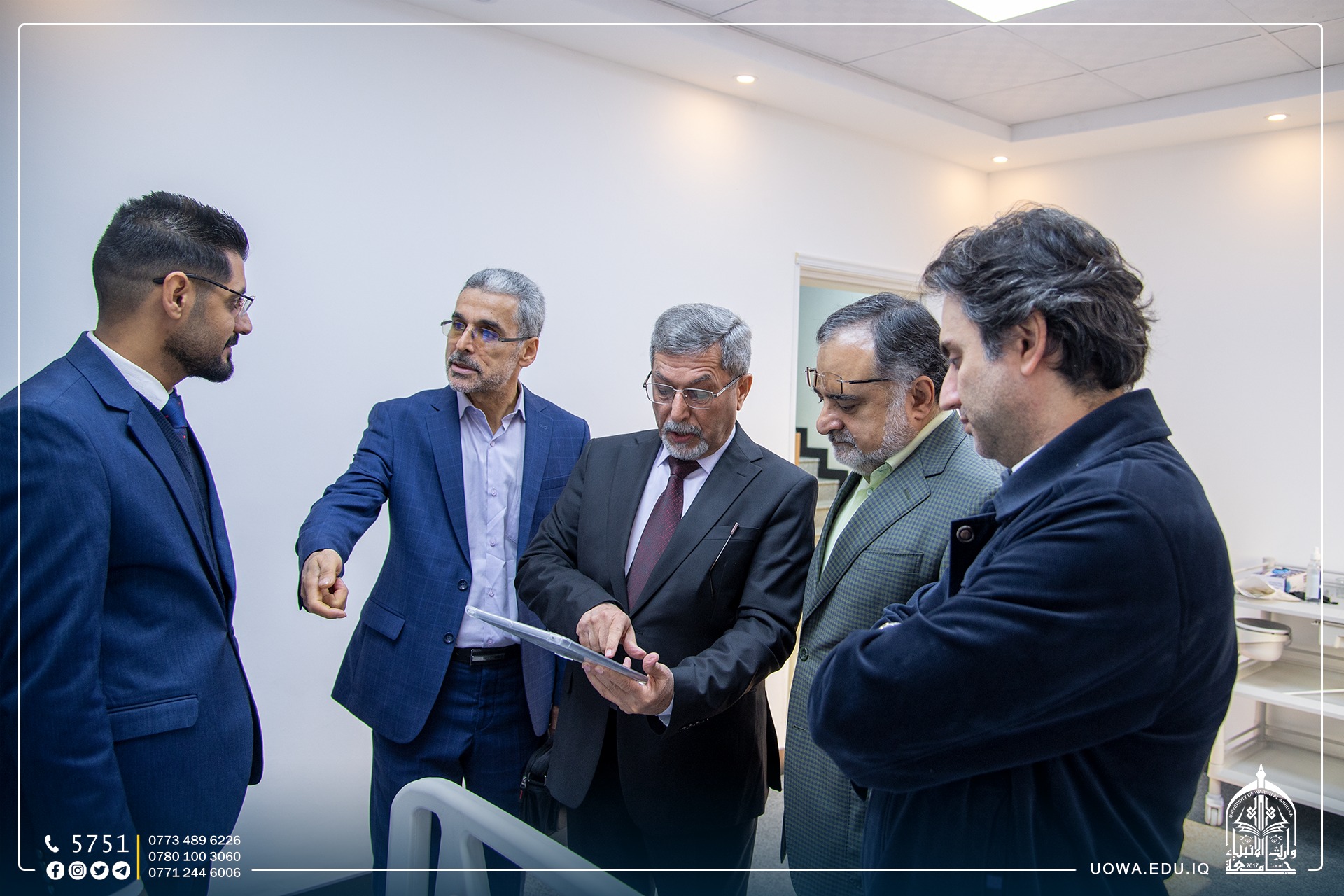استضاف السيد رئيس الجامعة الاستاذ الدكتور ابراهيم الحياوي في مكتبه الخاص، سماحة الشيخ عبد المهدي الكربلائي(دام عزه) ومعالي وزير التعليم الدكتور نعيم العبودي والسيد محافظ كربلاء المهندس نصيف الخطابي والسيد الامين العام للعتبة الحسينية الاستاذ حسن رشيد والدكتور ستار الساعدي رئيس هيئة الصحة والتعليم الجامعي.