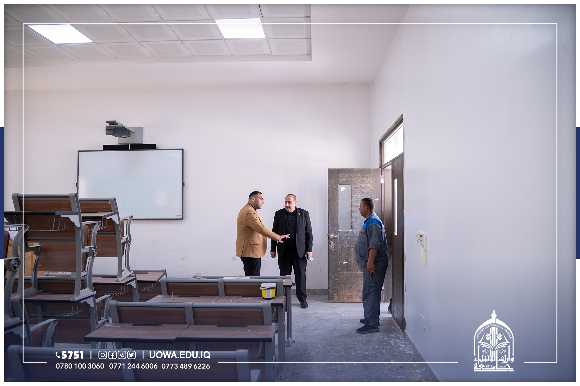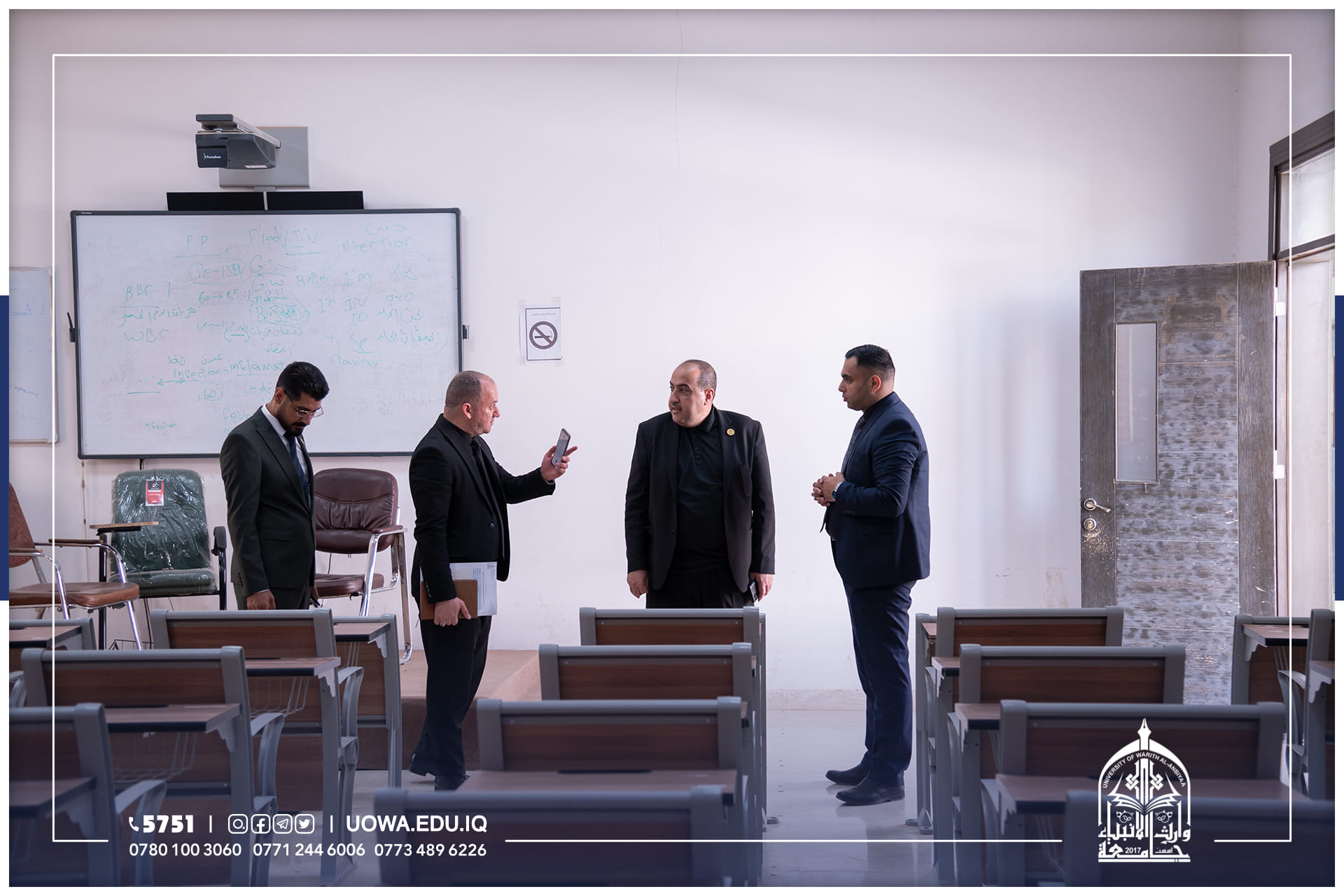 حيث تفقد برفقة عدد من السادة عمداء الكليات ورؤساء الاقسام سير اعمال البناء والتوسعة، وترميم القاعات الدراسية حرصا على تقديم أفضل سبل الراحة لطلبتنا الاعزاء وللكادر التدريسي.