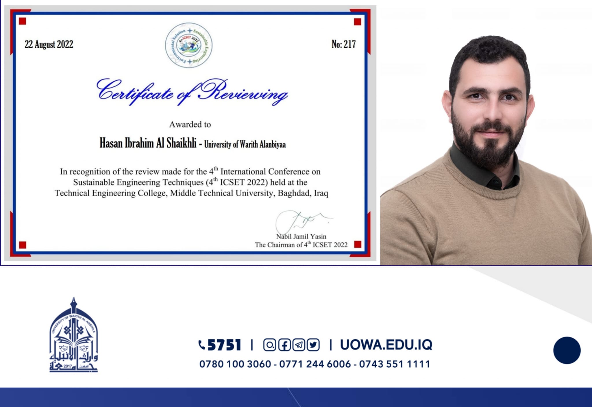 شارك التدريسي في كلية الهندسة الدكتور حسن ابراهيم في "المؤتمر الدولي الرابع لتقنيات الهندسة المستدامة" الذي اقامته الجامعة التقنية الوسطى/الكلية التقنية الهندسية في بغداد.