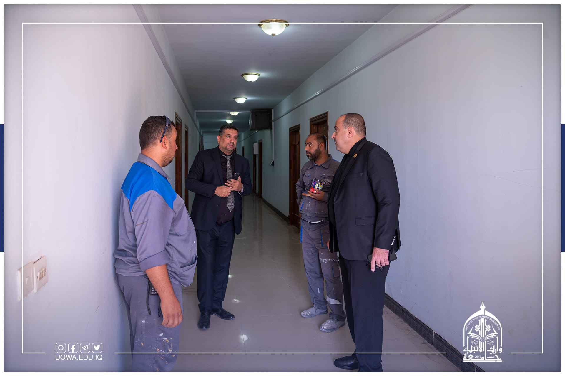 جانب من الجولة التفقدية لرئيس جامعة وارث الأنبياء (عليه السلام) الاستاذ الدكتور أبراهيم سعيد الحياوي على الأقسام الفنية والعلمية في الجامعة للوقوف على أحتياجاتها وأستعدادتها تحضيراً للعام الدراسي الجديد.