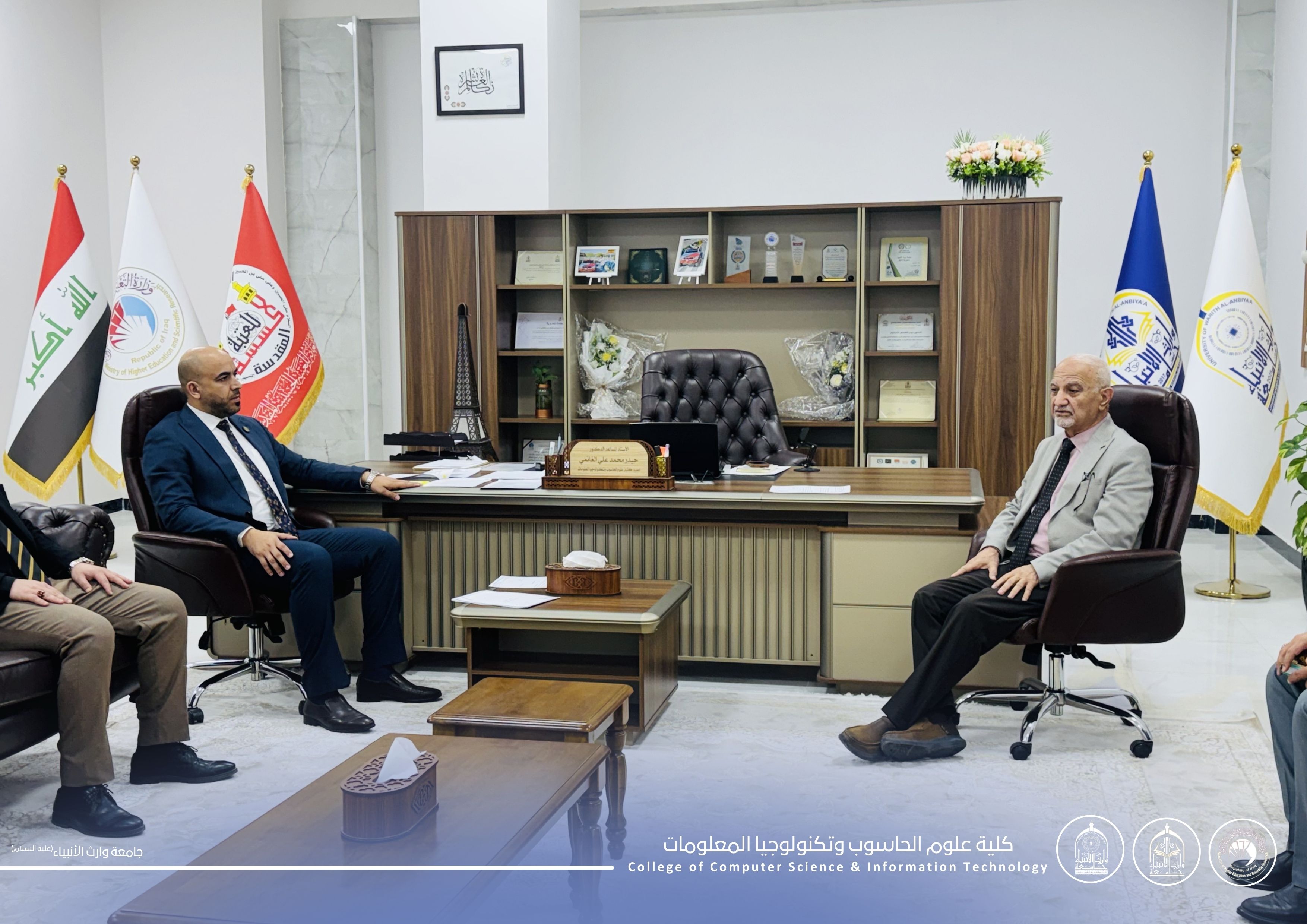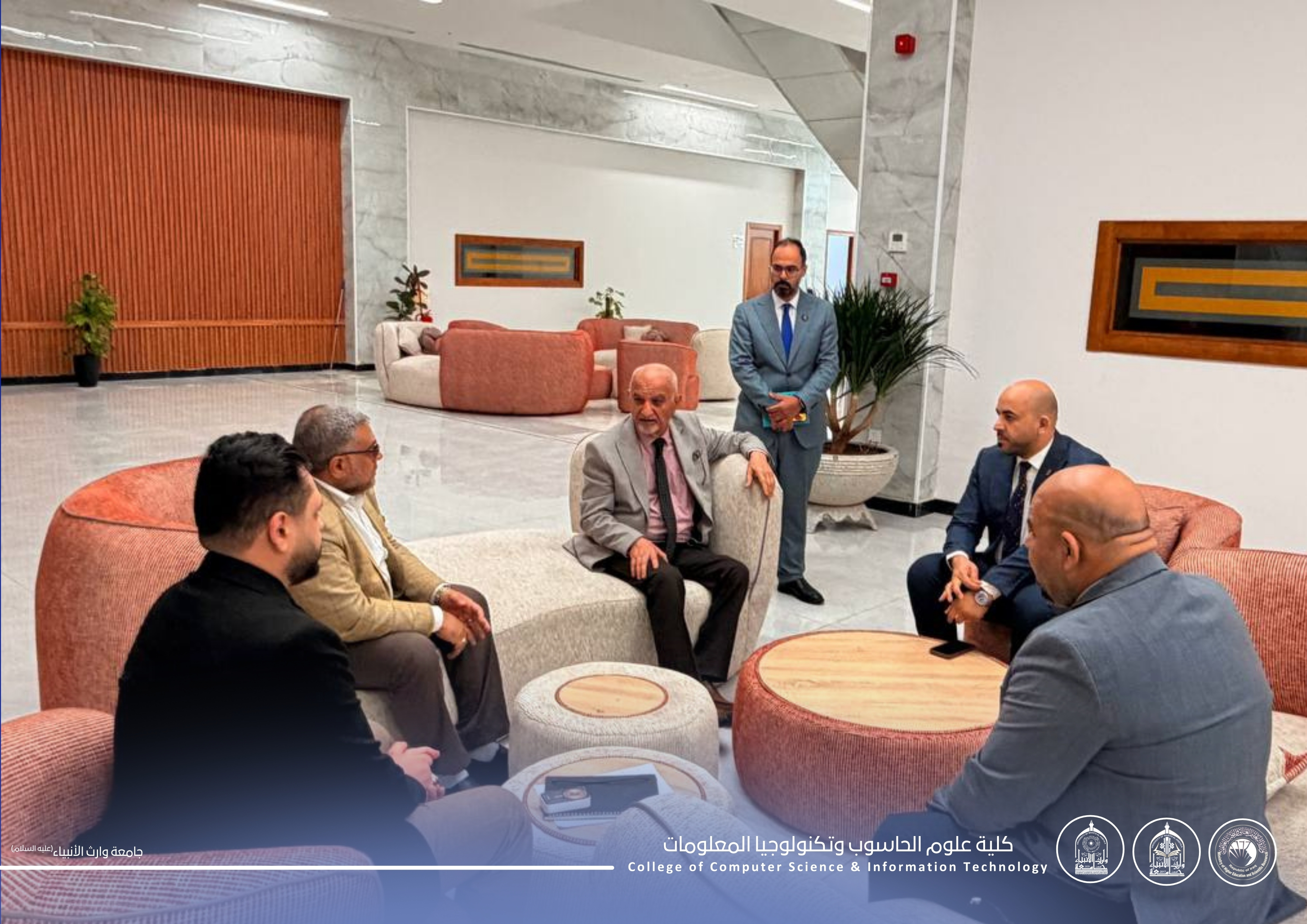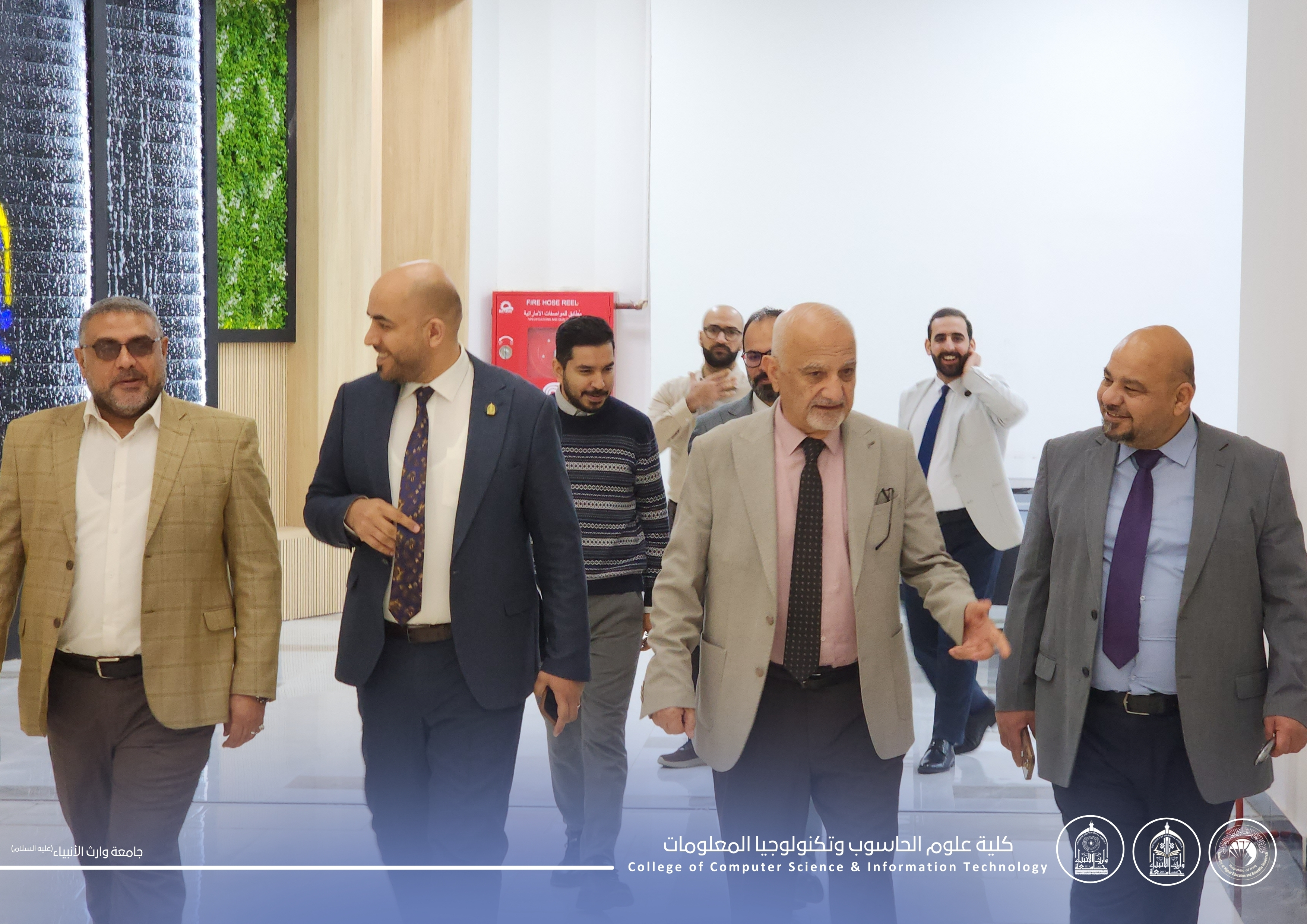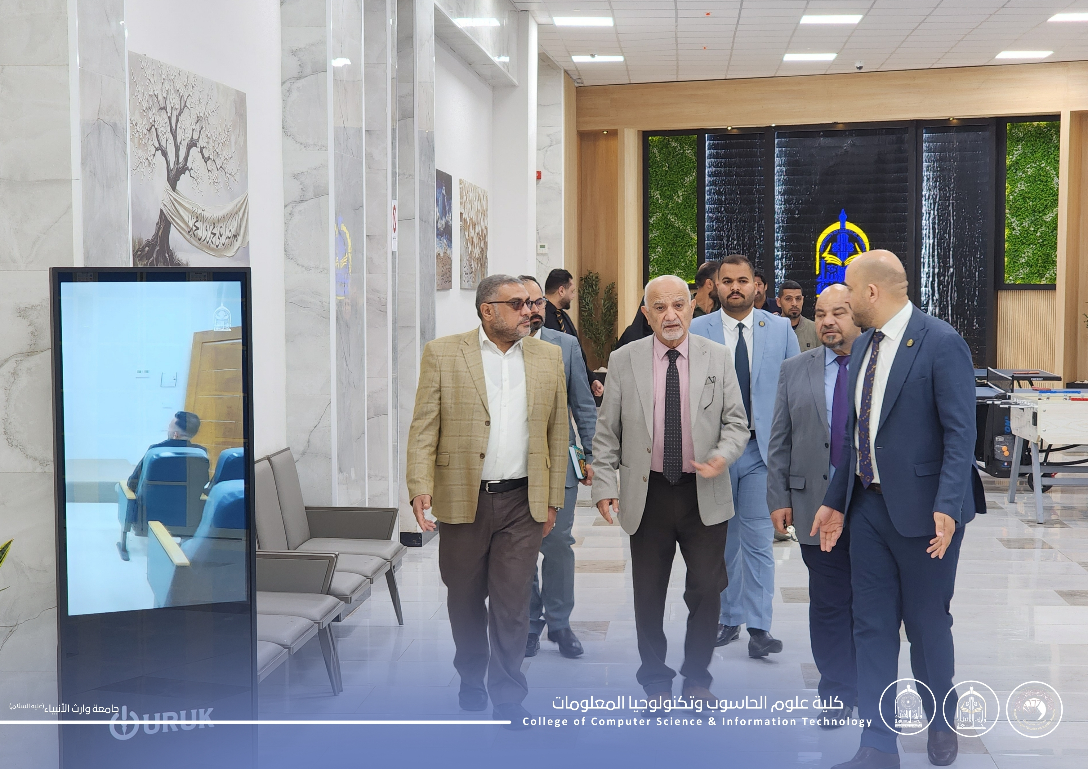 The Assistant President of the University for Administrative Affairs, Professor Dr. Nawfal Al-Araji, visited the College of Computer Science and Information Technology at the University of Warith Al-Anbiyaa to review the progress of the final examinations for first-year students and to follow up on the administrative and organizational aspects.