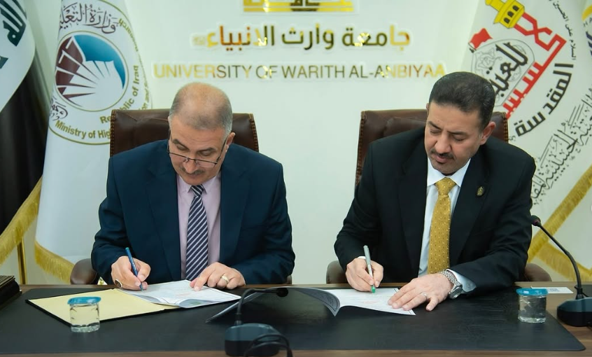 In its pursuit of expanding academic and research collaboration, the College of Medicine at Warith Al-Anbiya University (peace be upon him), represented by its Dean, Professor Dr. Ali Abdul Saadoun Al-Ghazi, signed a joint scientific cooperation agreement with the College of Medicine at Al-Qadisiyah University, represented by its Dean, Professor Dr. Aqeel Raheem Hassan Al-Barqawi. This agreement aims to enhance scientific exchange between the two institutions through the sharing of teaching and research exp